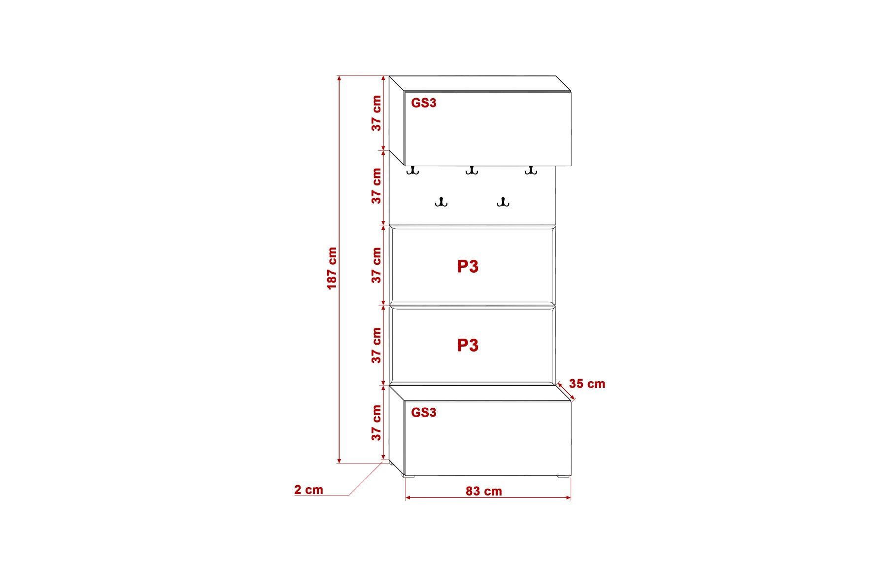 GF77 Flur Dielenmöbel Garderobenschrank Dielenschrank Schuhschrank Flurmöbel Spiegel