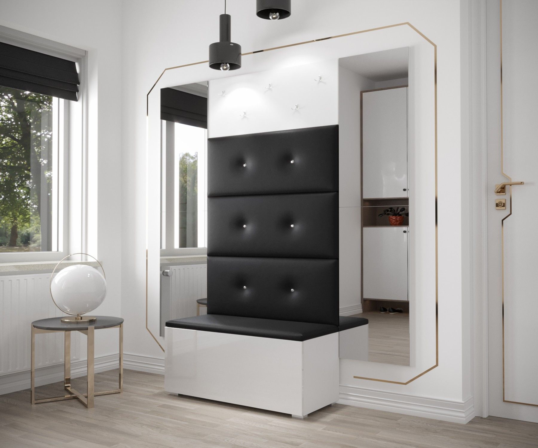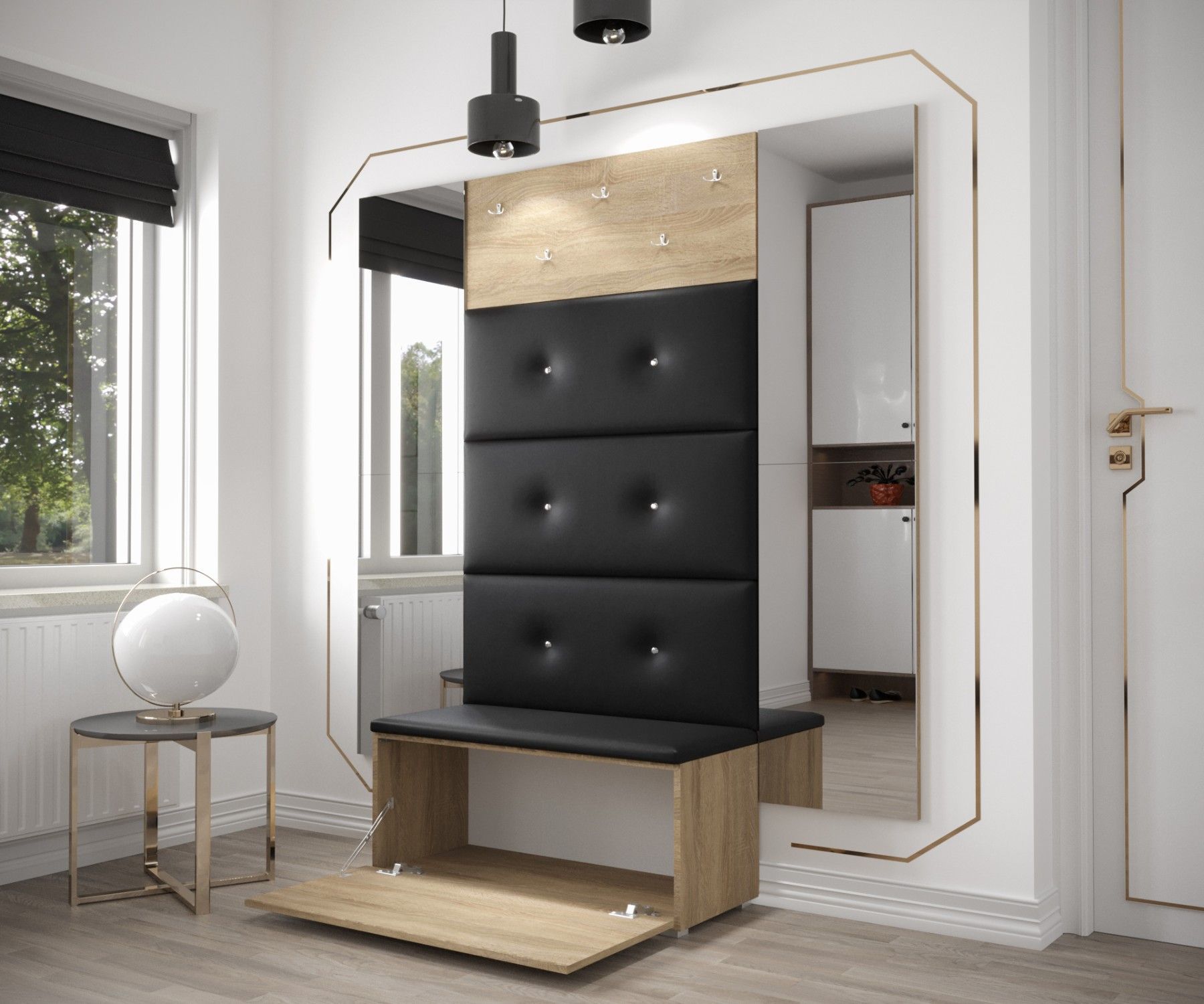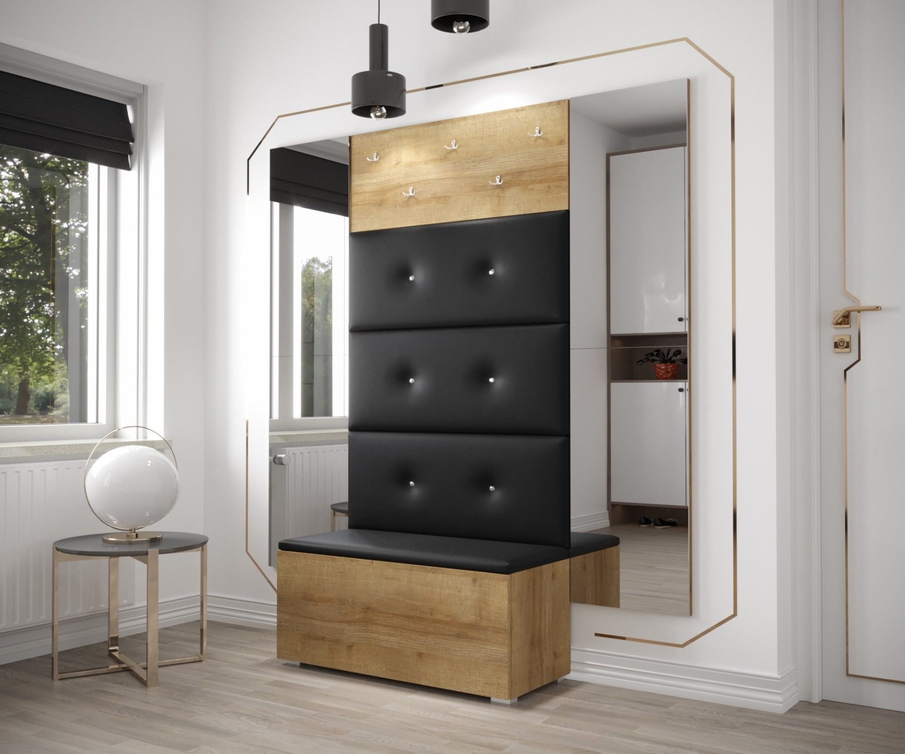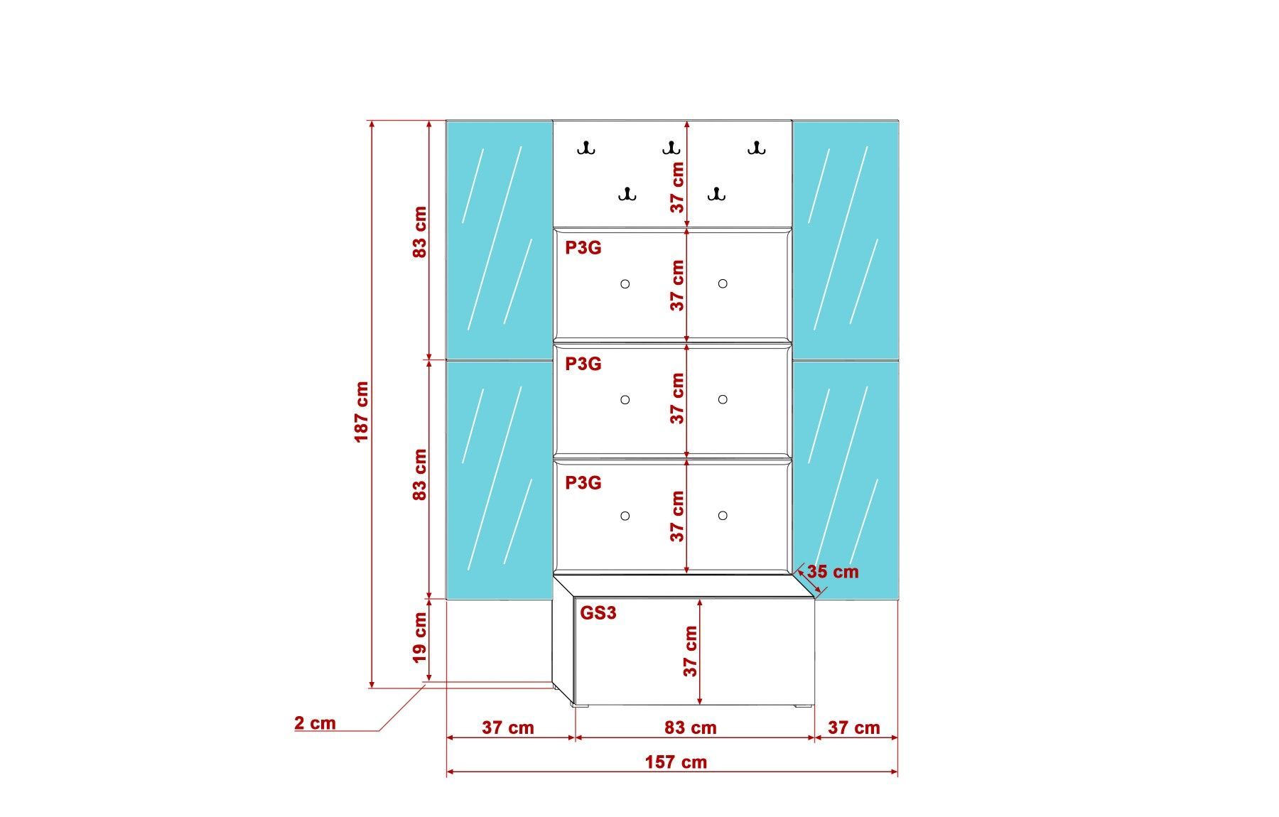 GF79 Flur Dielenmöbel Garderobenschrank Dielenschrank Schuhschrank Flurmöbel Spiegel