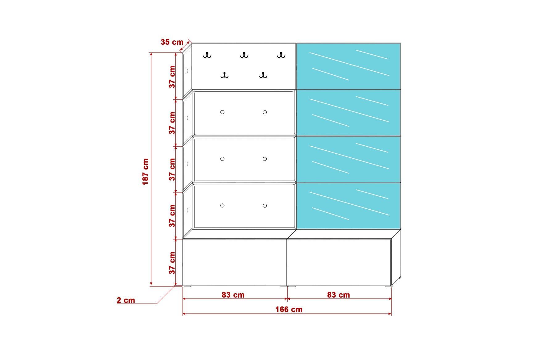 GF80 Flur Dielenmöbel Garderobenschrank Dielenschrank Schuhschrank Flurmöbel Spiegel
