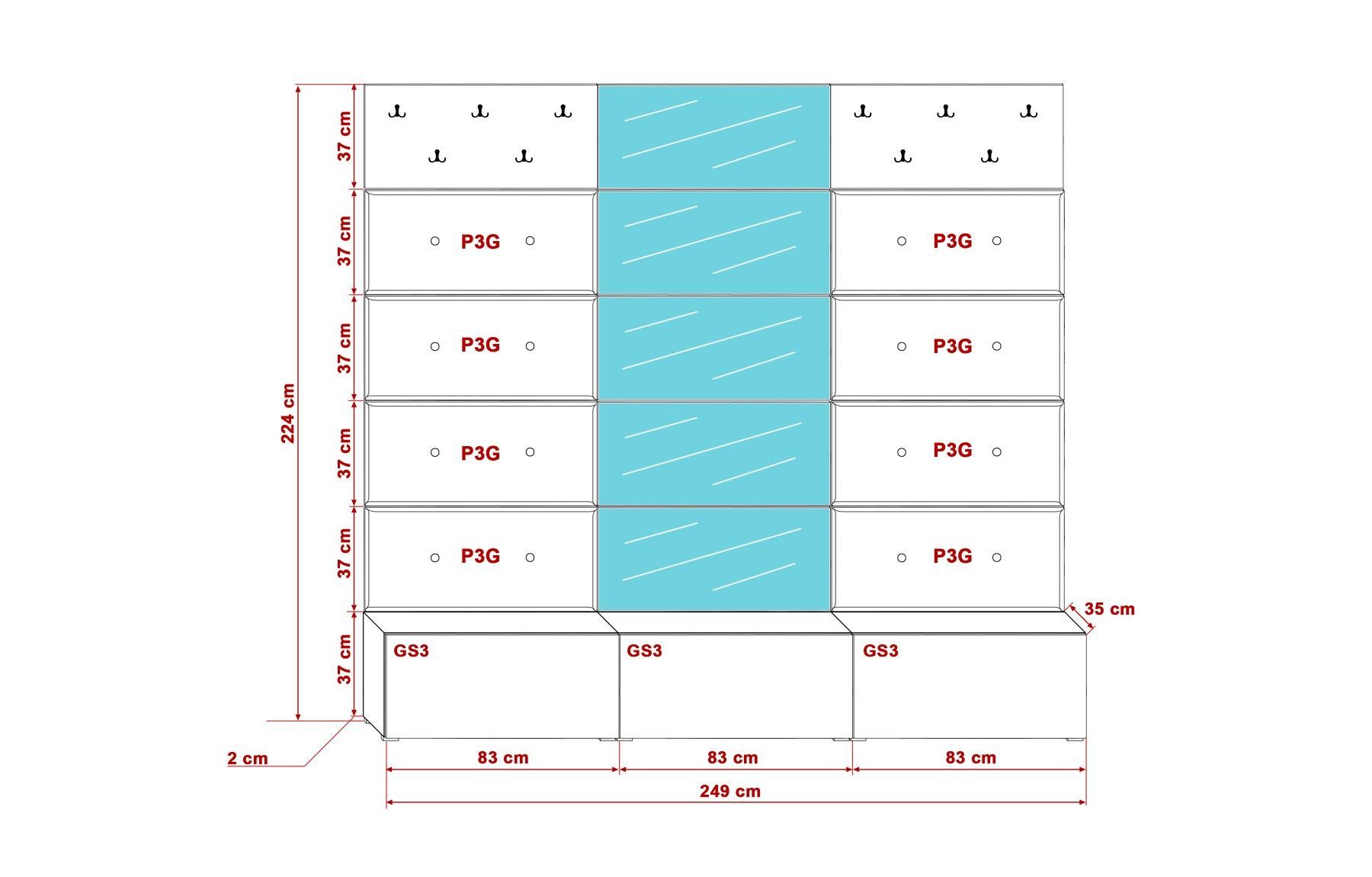 GF82 Flur Dielenmöbel Garderobenschrank Dielenschrank Schuhschrank Flurmöbel Spiegel