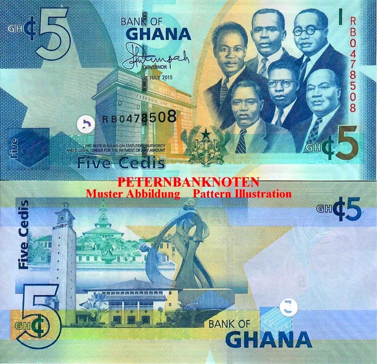Ghana 5 Cedi 2015 Unc. P. 38f 6319#