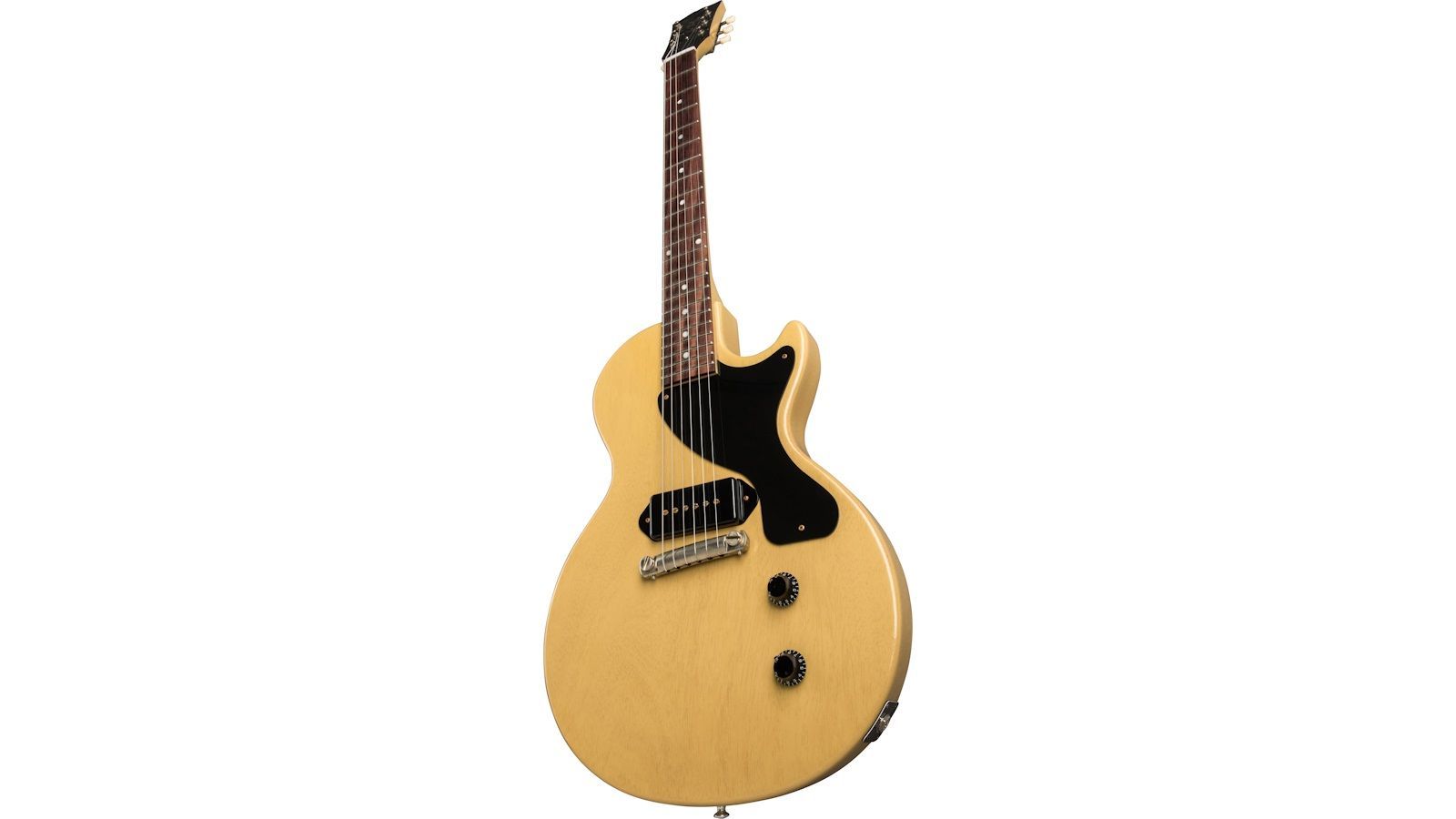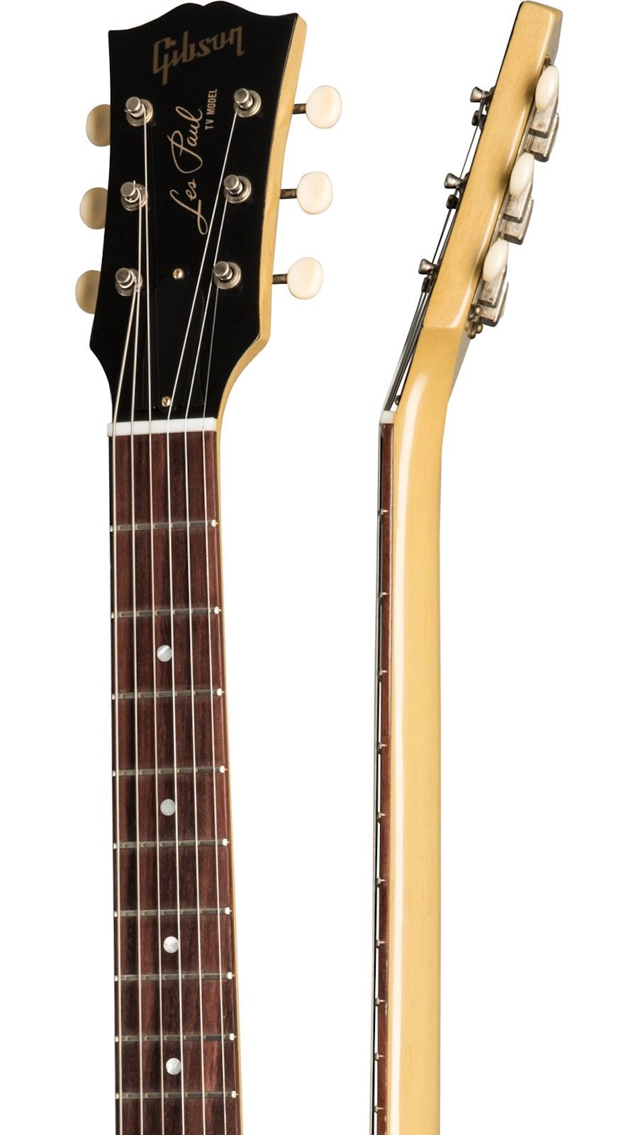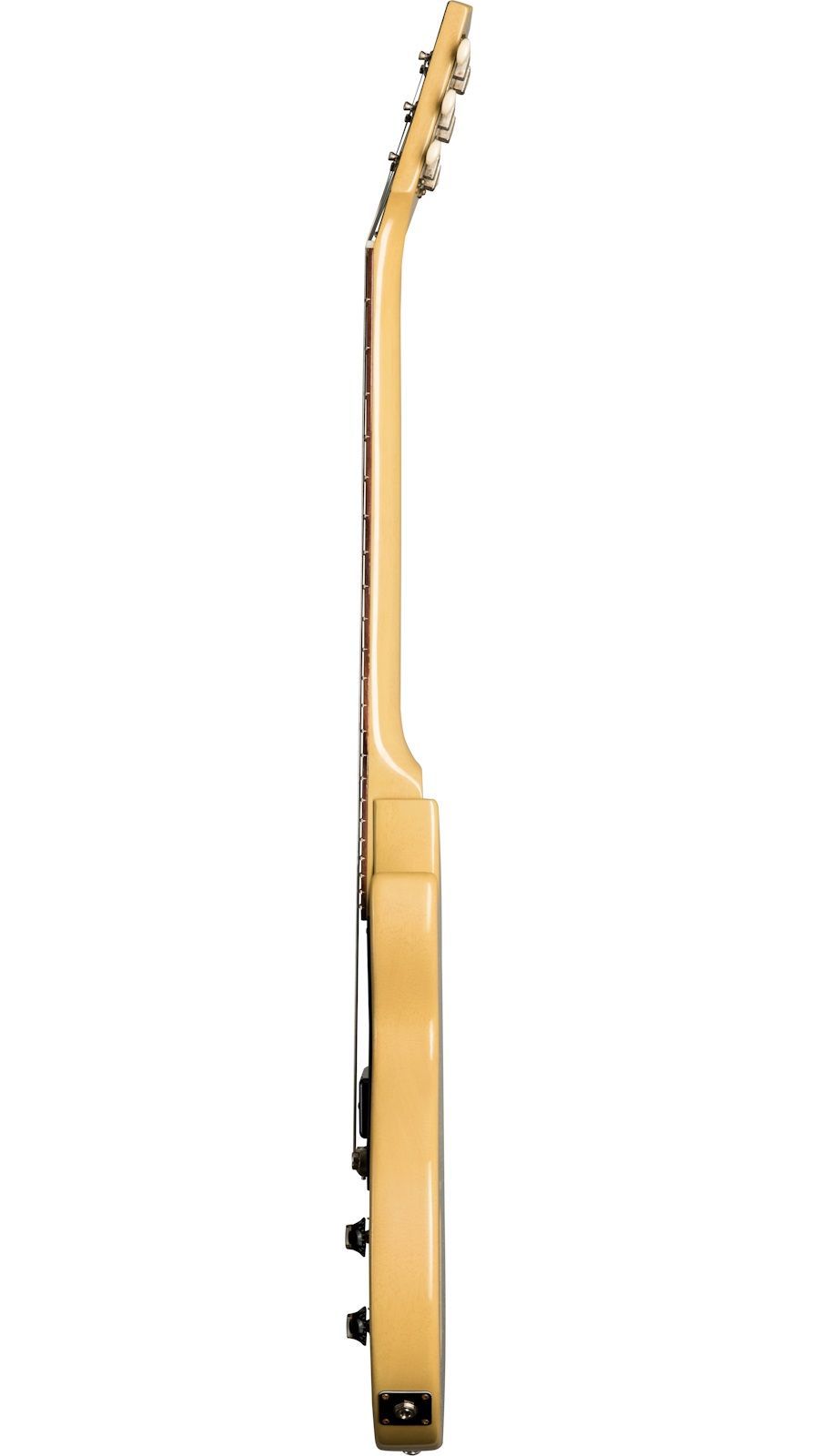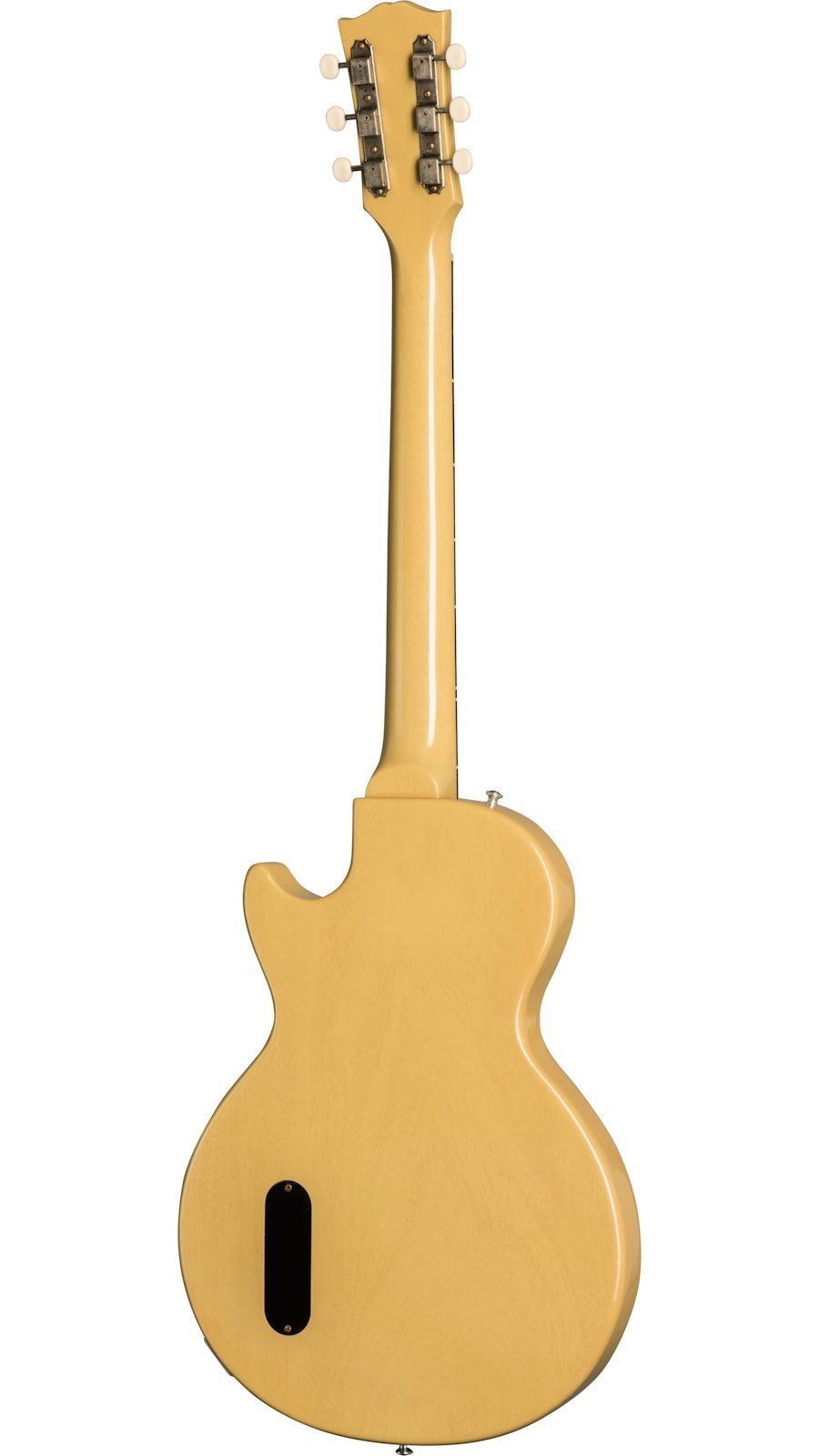 Gibson 1957 Les Paul Junior SC VOS Custom Shop TV Yellow Korpus: Mahagoni einteilig Hals: Mahagoni Griffbrett: Palisander Mensur: 62,8 cm (24,72' ) Sattelbreite: 43 mm Halsprofil: Chunky ''C'' Sattel: Nylon 22 Medium Jumbo Bünde Tonabnehmer: 1 x Custom P-90 Dog Ear Regler: 1 x Master Volume, 1 x Mas