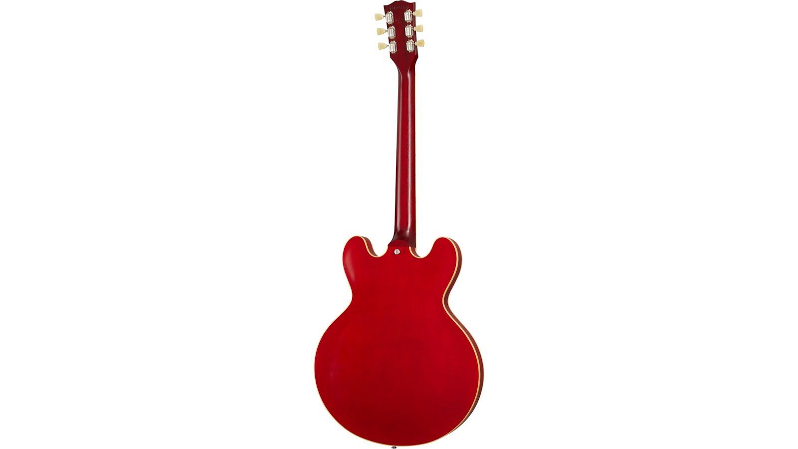 Gibson ES-335 Satin Cherry Korpus: Ahorn Pappel Ahorn, 3-teilig Decke: Ahorn Pappel Ahorn, 3-teilig Bracing: Fichte Hals: Mahagoni Halsprofil: Rounded 'C' Griffbrett: Palisander Mensur: 62,8 cm (24,75') Griffbrettradius: 12' 22 Medium Jumbo Bünde Sattelbreite: 43 mm Tonabnehmer: 2 x Calibrated T-Typ