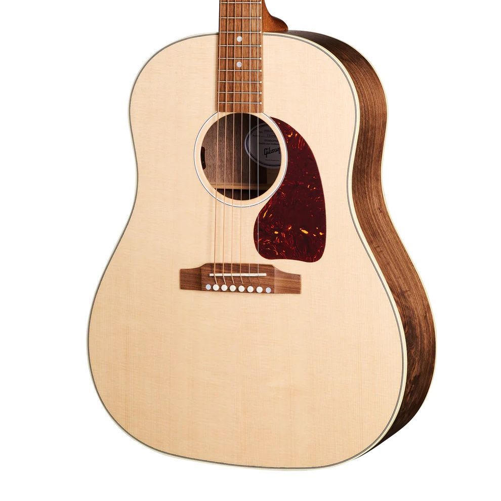 Gibson J-45 Studio Walnut - Natural Korpusform: J-45 Decke: Sitka Fichte massiv Boden und Zargen: Walnuss massiv Hals: Utile Halsprofil: Advanced Response Griffbrett: Walnuss Griffbretteinlagen: Mother-of-Pearl Dots Mensur: 62,8 cm (24,75'') Sattelbreite: 43,8 mm (1,73'') Griffbrettradius: 16' 20 St
