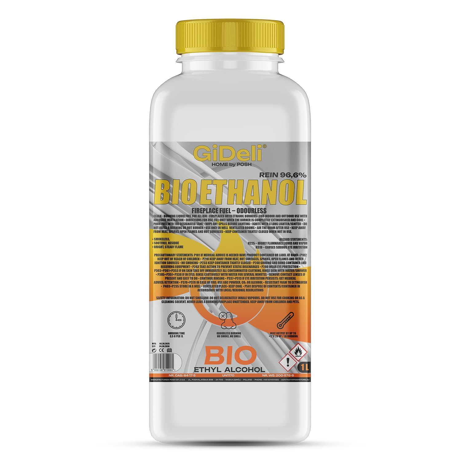 GiDeli bioethanol 1 l Ethanol 96,6% Bio Alkohol geruchlos sauber brennend