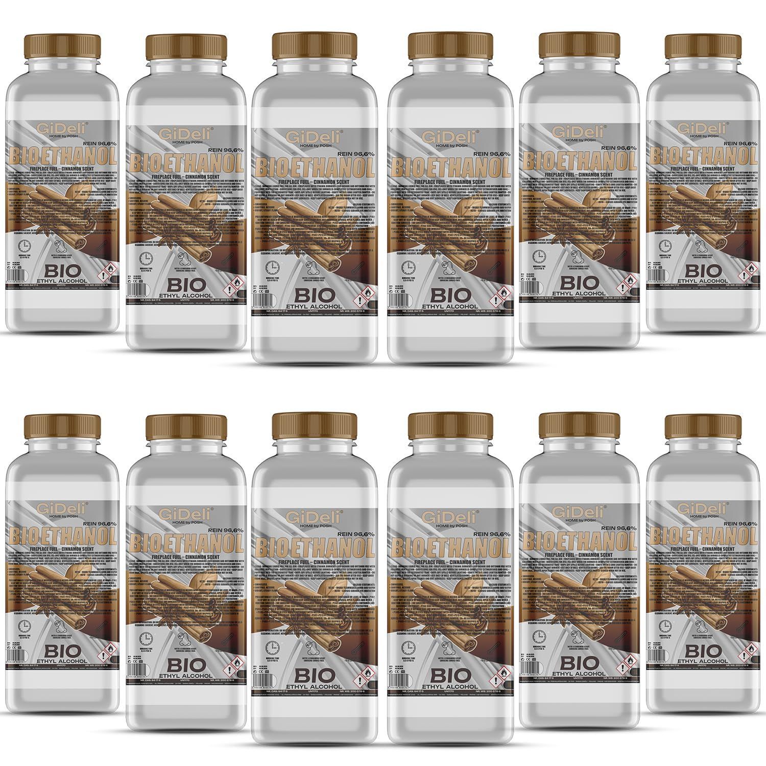 GiDeli bioethanol 12 x 1 l mit Zimtduft 96,6% Ethanol für Innen & Außenkamine
