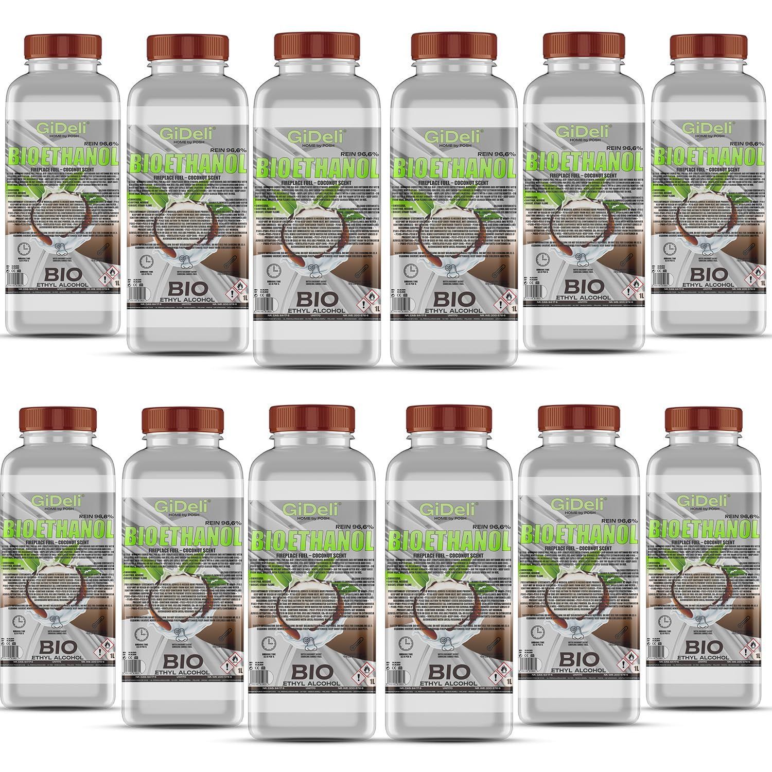 GiDeli bioethanol 12 x 1l Kokosduft 96,6% Ethanol für Innen & Außenkamine