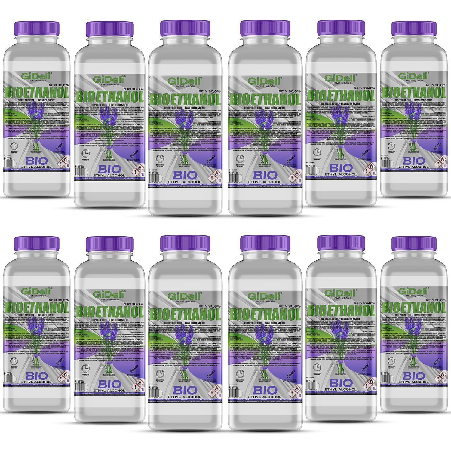GiDeli bioethanol 12 x 1l lavendelduft 96,6% Ethanol für Innen & Außenkamine