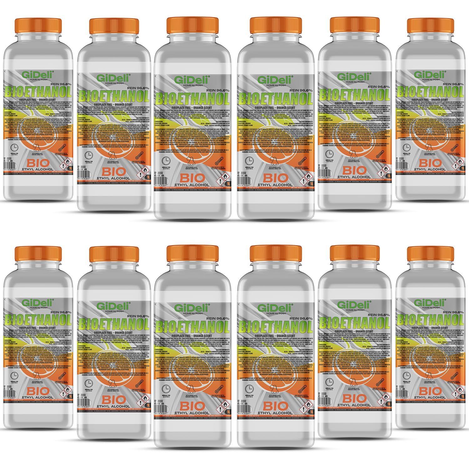 GiDeli bioethanol 12 x 1l Orangenduft 96,6% Ethanol für Innen & Außenkamine