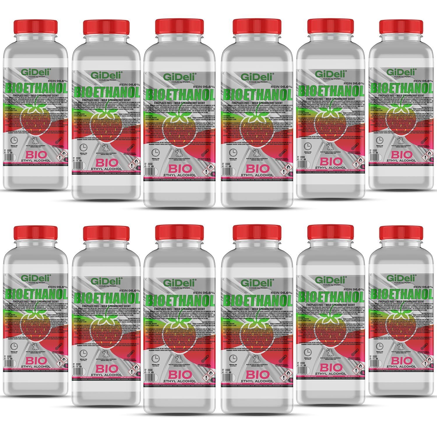 GiDeli bioethanol 12 x 1l Walderdbeerduft 96,6% Ethanol für Innen & Außenkamine