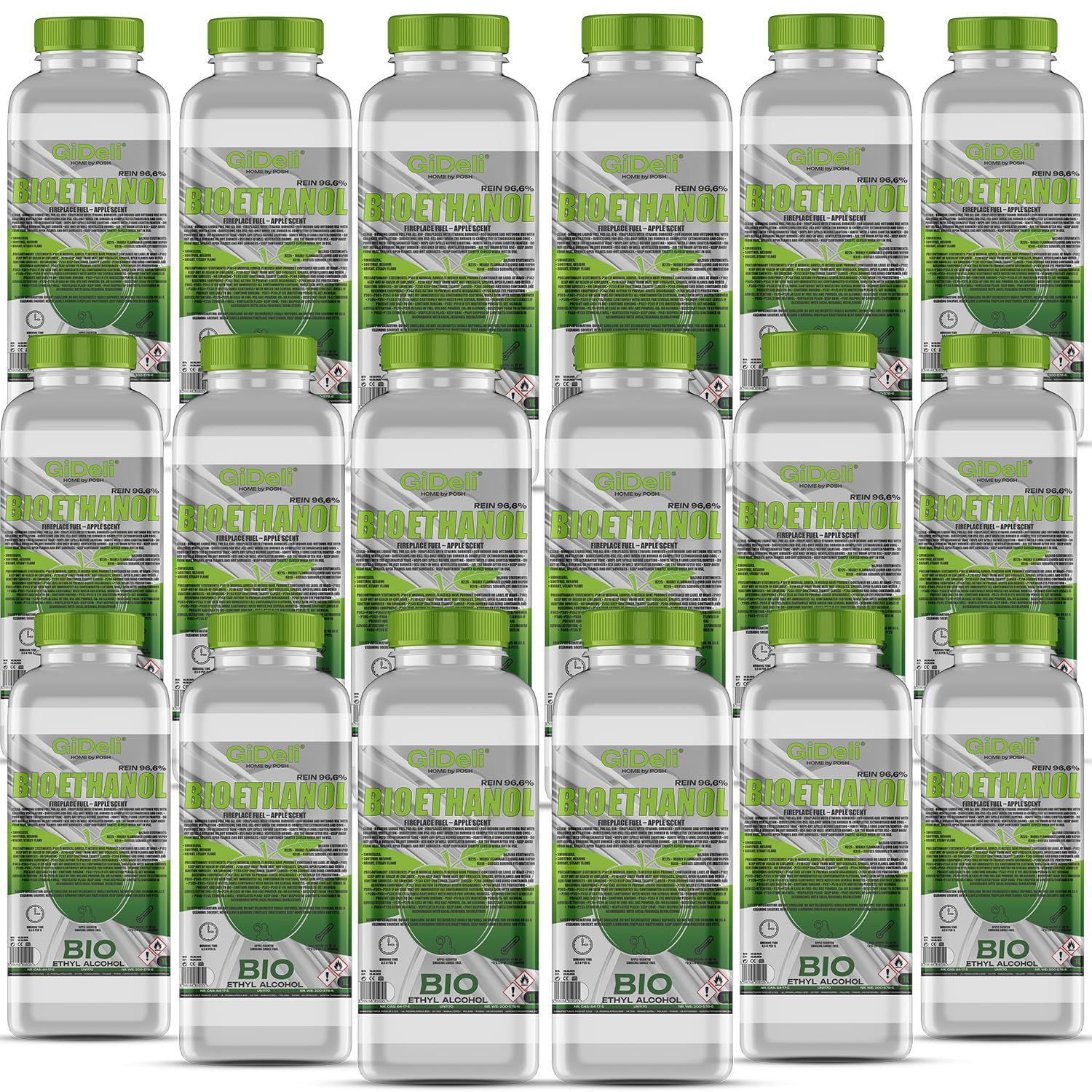 GiDeli bioethanol 18 x 1l Apfelduft 96,6% Ethanol für Innen & Außenkamine