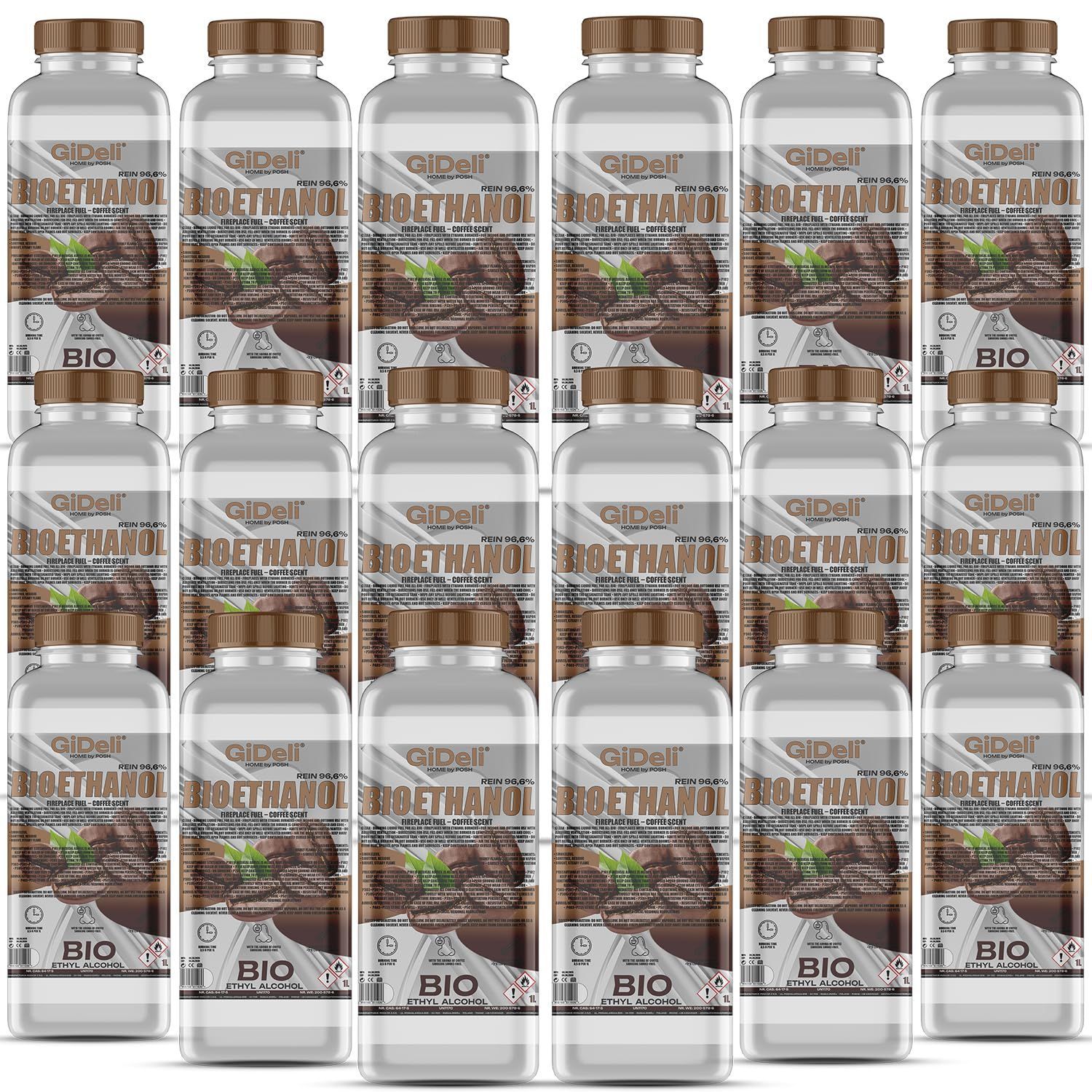GiDeli bioethanol 18 x 1l Kaffeeduft 96,6% Ethanol für Innen & Außenkamine