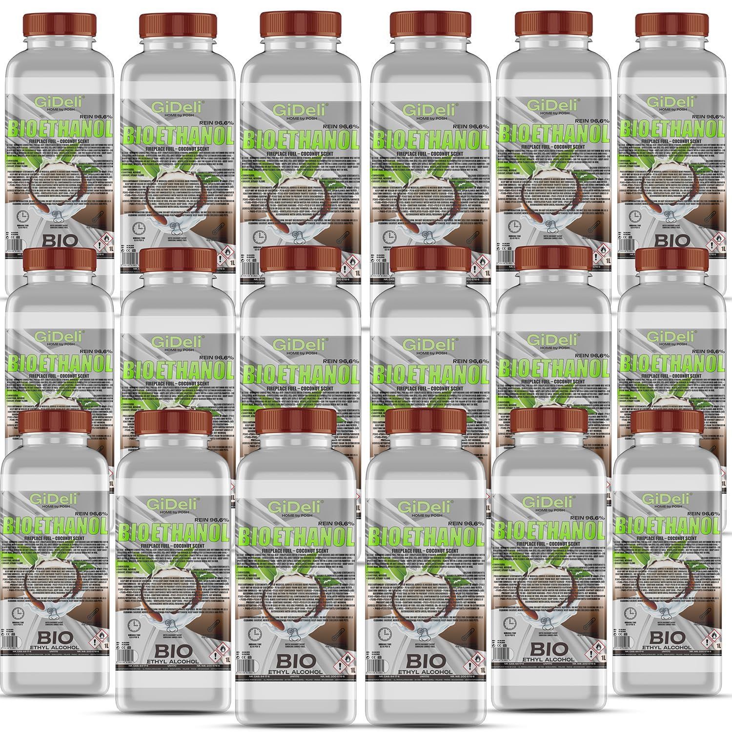 GiDeli bioethanol 18 x 1l Kokosduft 96,6% Ethanol für Innen & Außenkamine