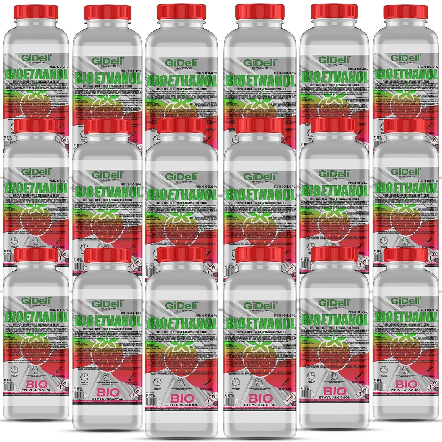GiDeli bioethanol 18 x 1l Walderdbeerduft 96,6% Ethanol für Innen & Außenkamine