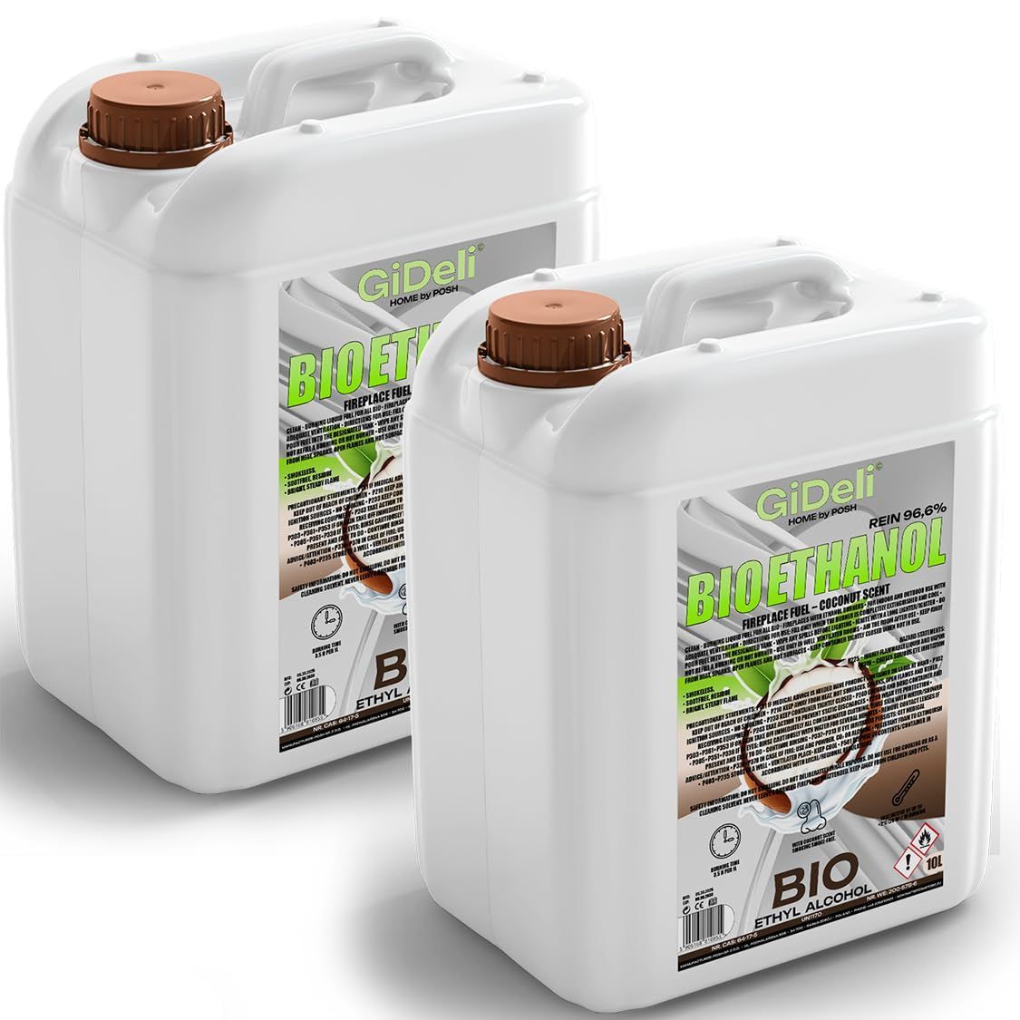 GiDeli bioethanol 2 x 10l Kokosduft 96,6% Ethanol für Innen & Außenkamine