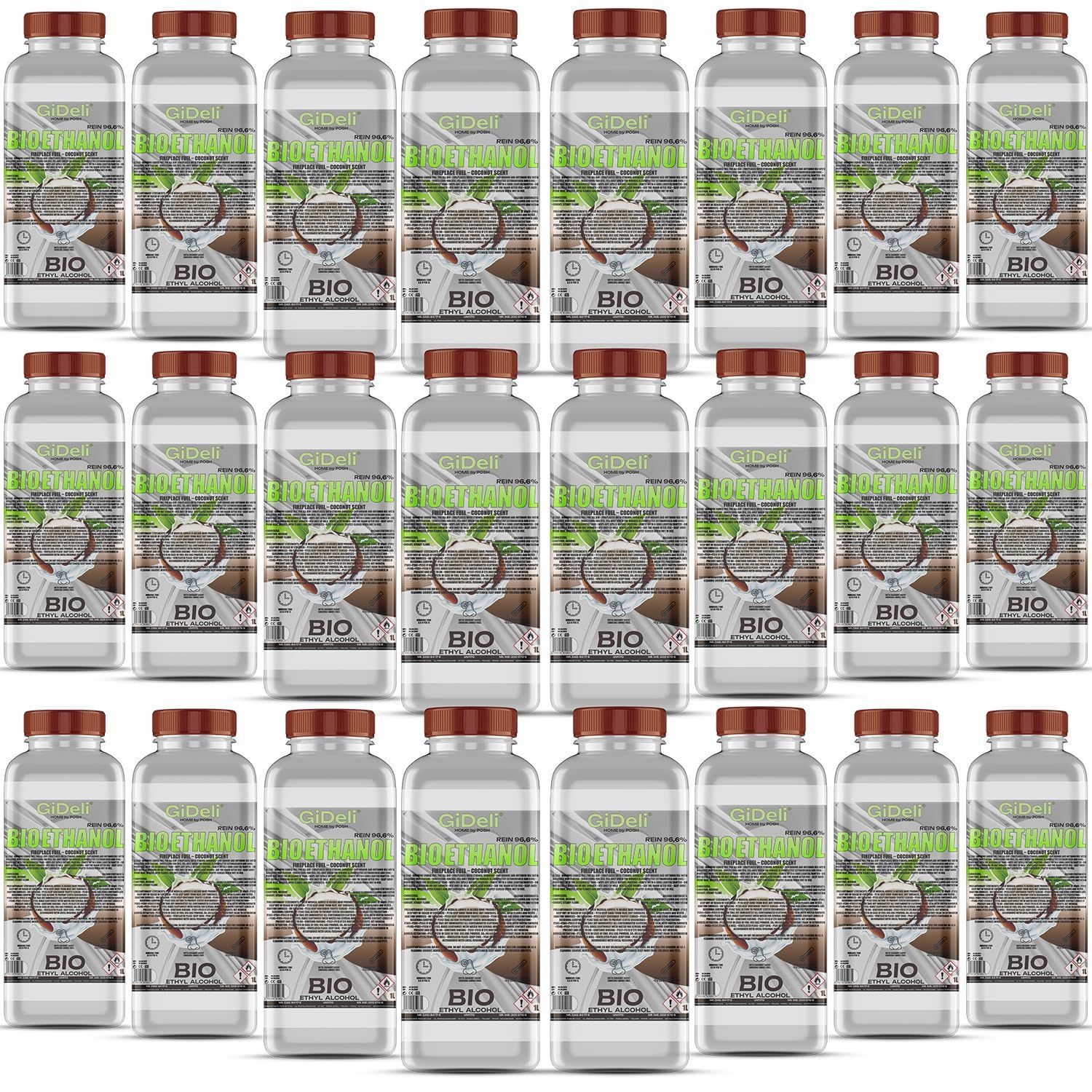 GiDeli bioethanol 24 x 1l Kokosduft 96,6% Ethanol für Innen & Außenkamine
