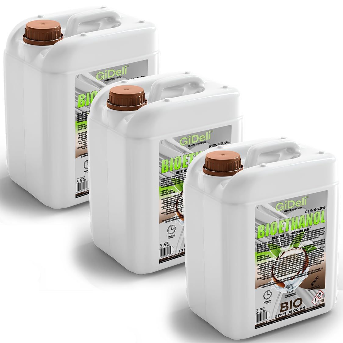 GiDeli bioethanol 3 x 10l Kokosduft 96,6% Ethanol für Innen & Außenkamine