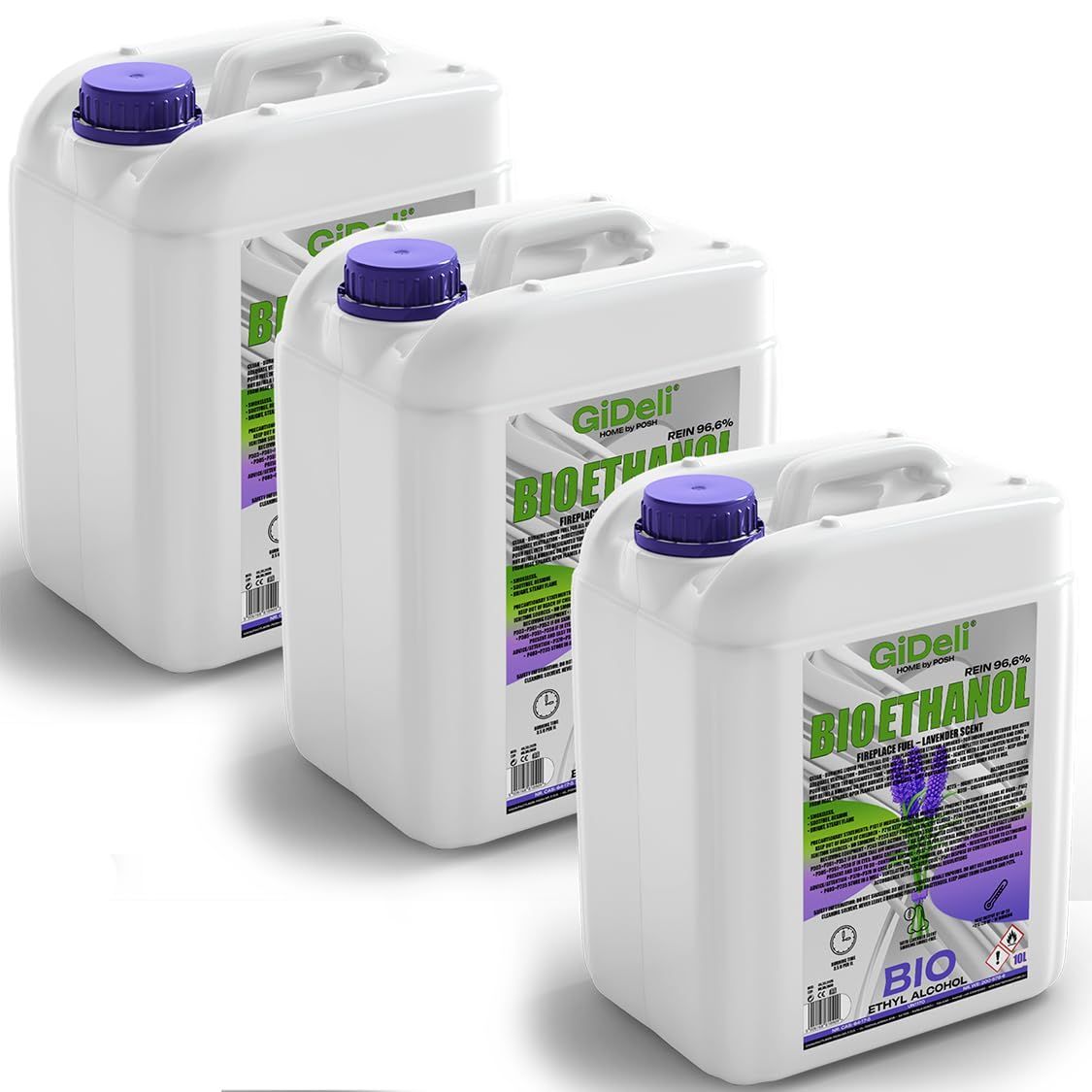 GiDeli bioethanol 3 x 10l lavendelduft 96,6% Ethanol für Innen & Außenkamine