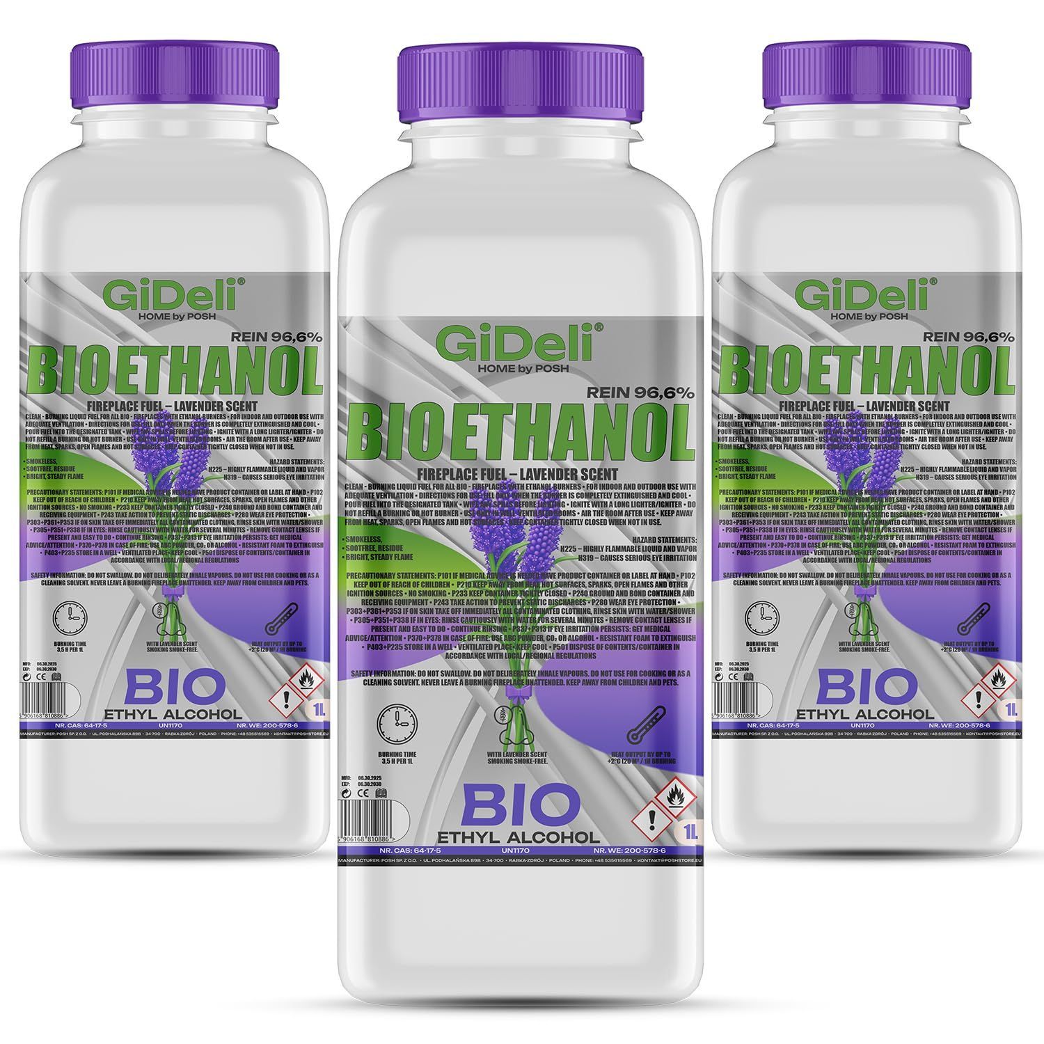 GiDeli bioethanol 3 x 1l lavendelduft 96,6% Ethanol für Innen & Außenkamine