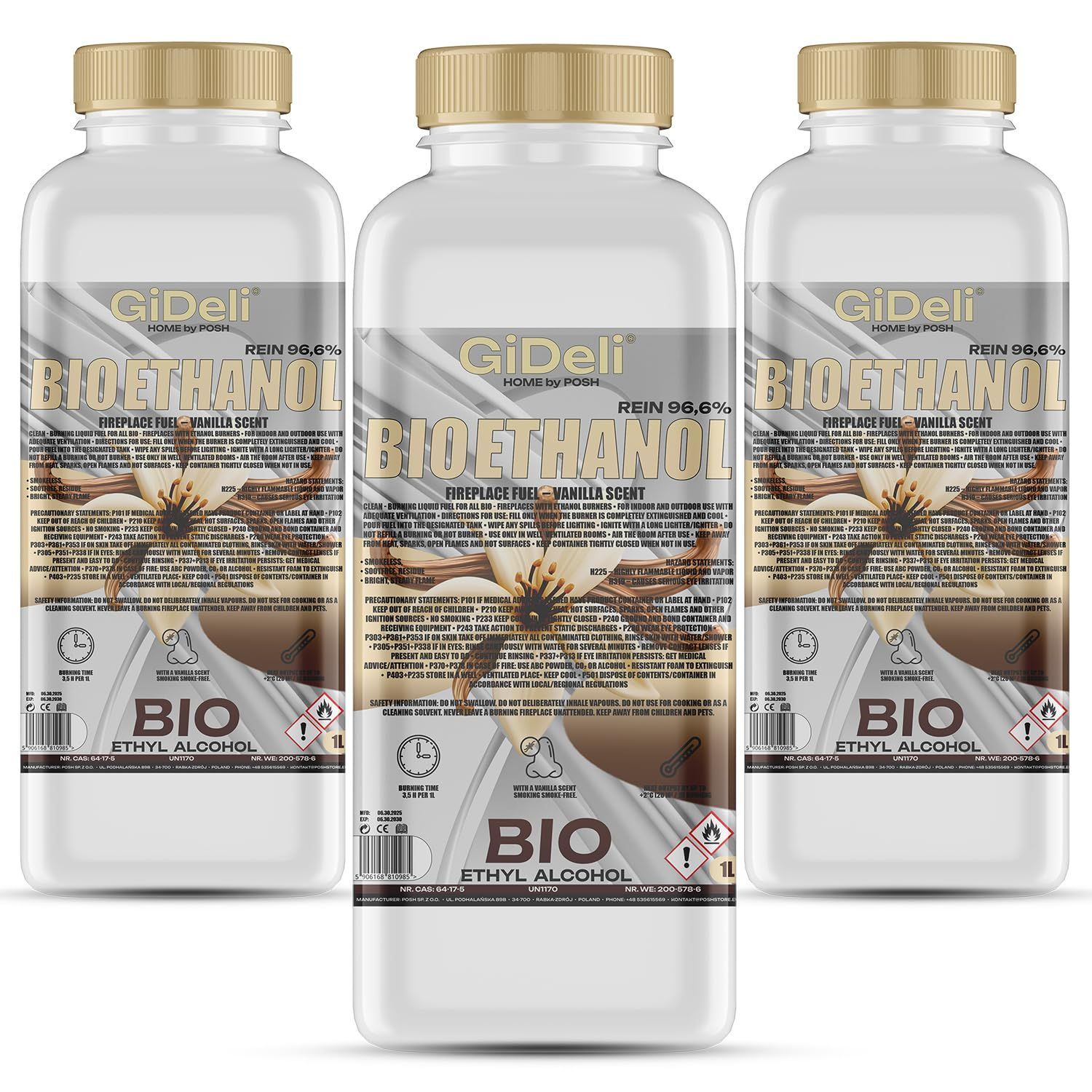 GiDeli bioethanol 3 x 1l Vanilleduft 96,6% Ethanol für Innen & Außenkamine
