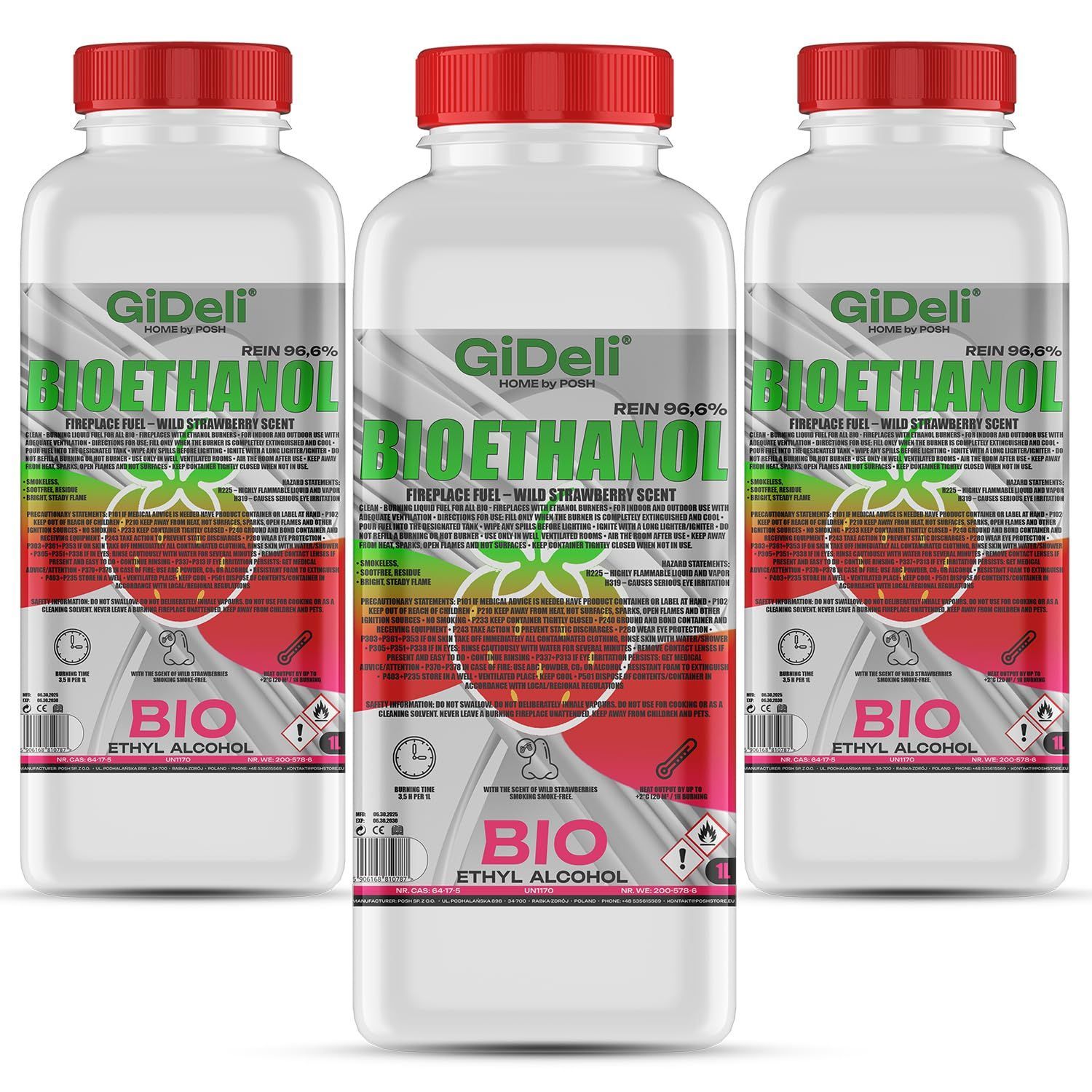 GiDeli bioethanol 3 x 1l Walderdbeerduft 96,6% Ethanol für Innen & Außenkamine