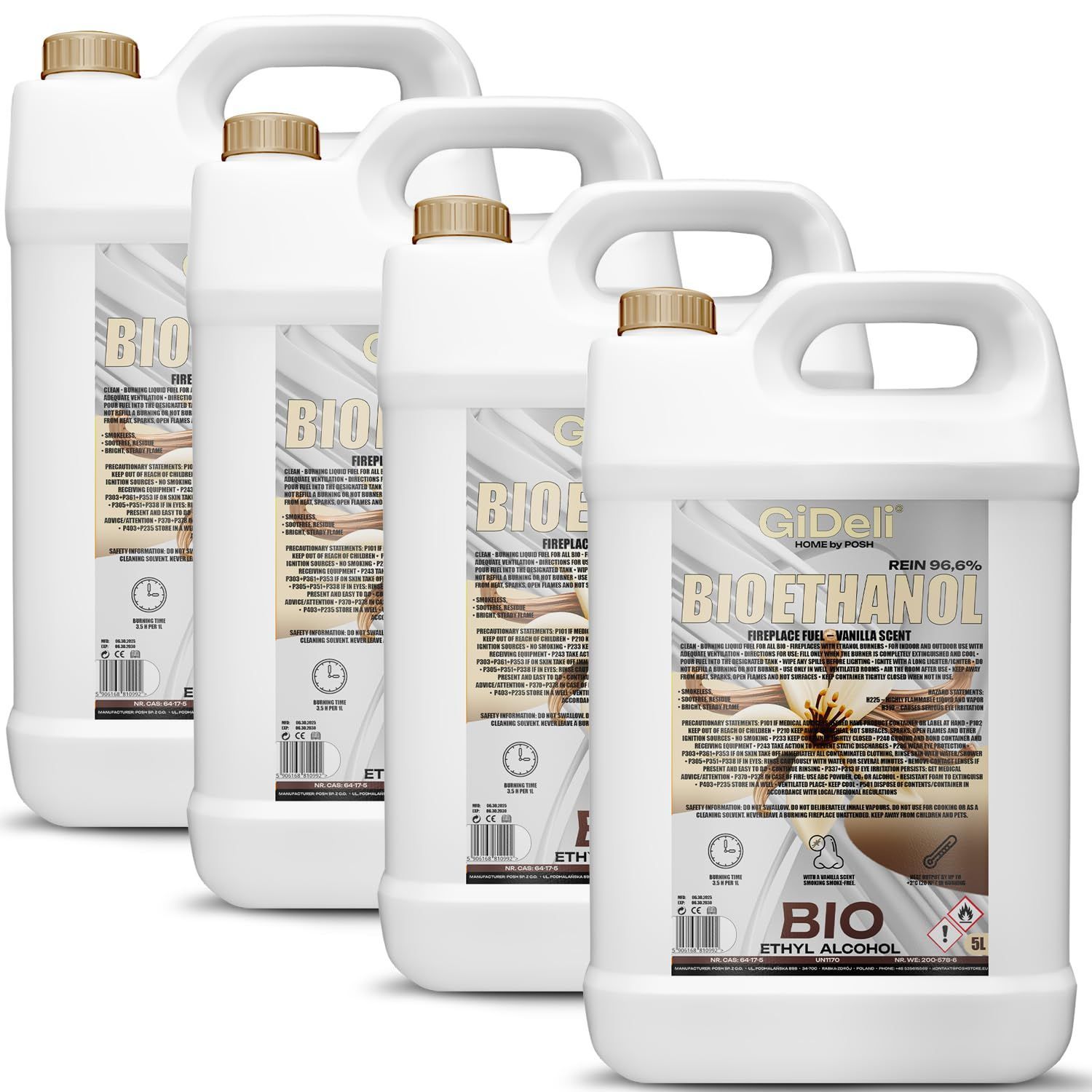 GiDeli bioethanol 4 x 5l Vanilleduft 96,6% Ethanol für Innen & Außenkamine