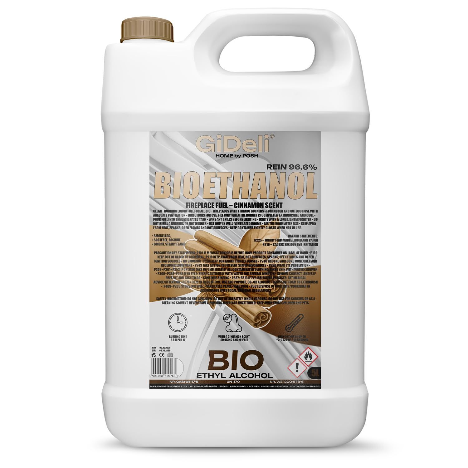 GiDeli bioethanol 5 l mit Zimtduft 96,6% Ethanol für Innen & Außenkamine