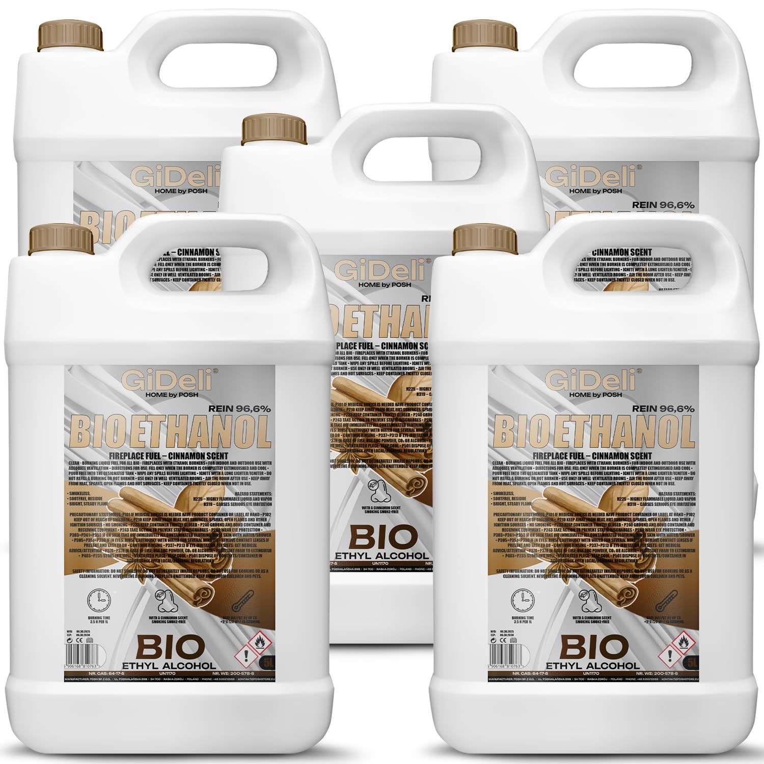 GiDeli bioethanol 5 x 5 l mit Zimtduft 96,6% Ethanol für Innen & Außenkamine