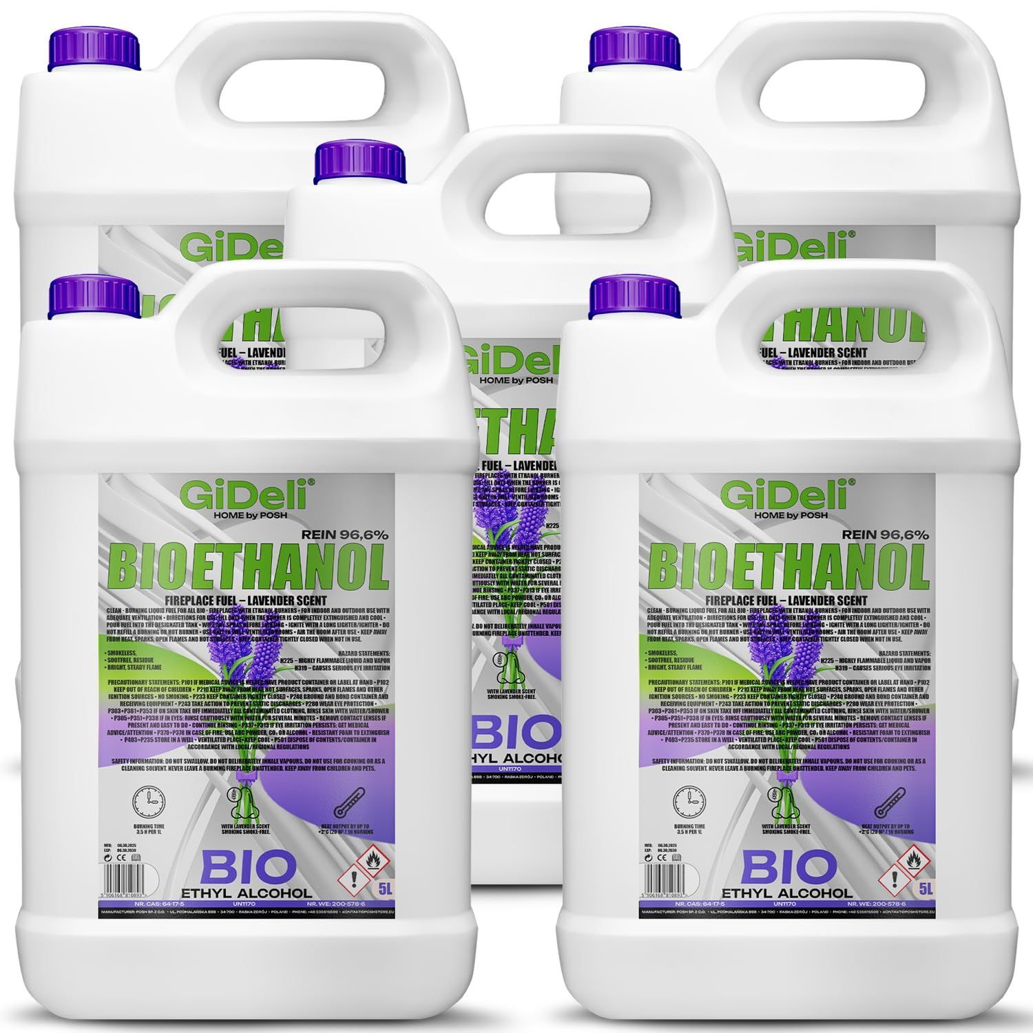 GiDeli bioethanol 5 x 5l lavendelduft 96,6% Ethanol für Innen & Außenkamine