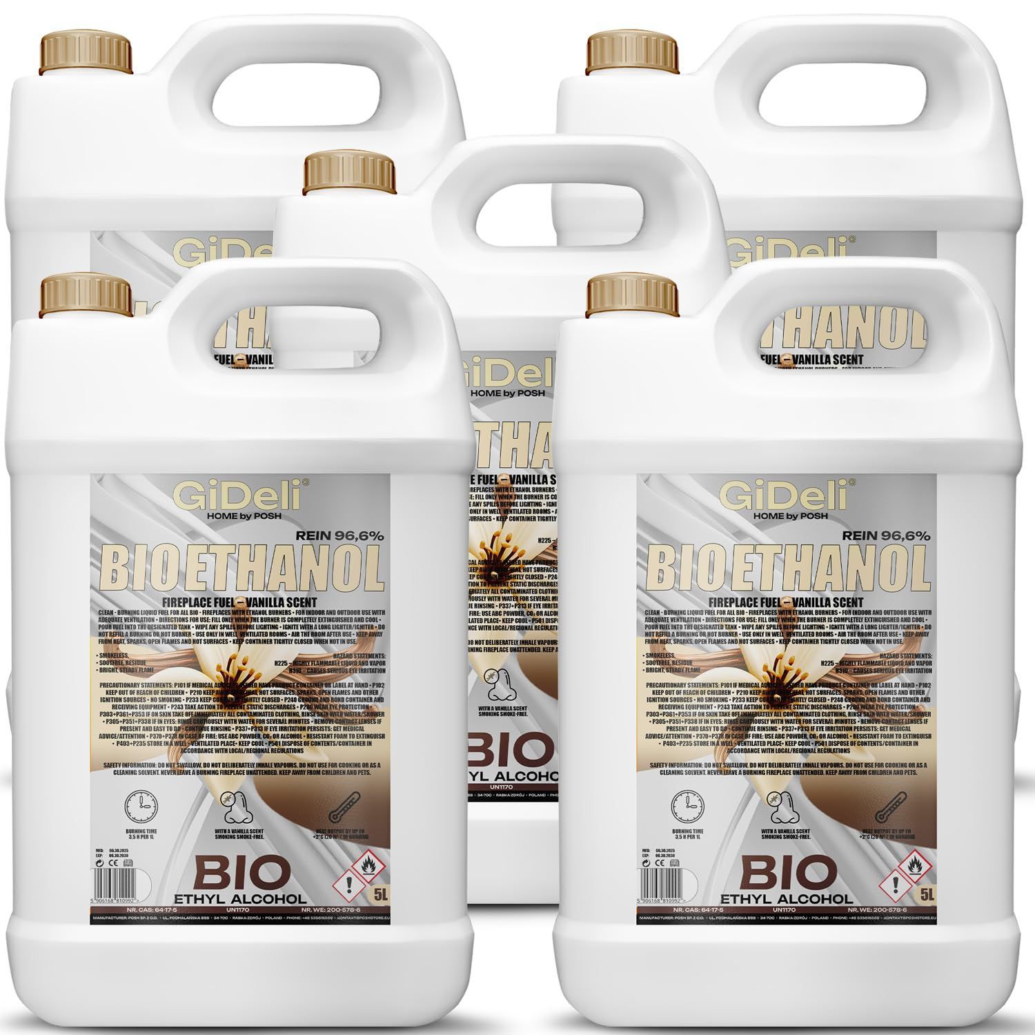 GiDeli bioethanol 5 x 5l Vanilleduft 96,6% Ethanol für Innen & Außenkamine
