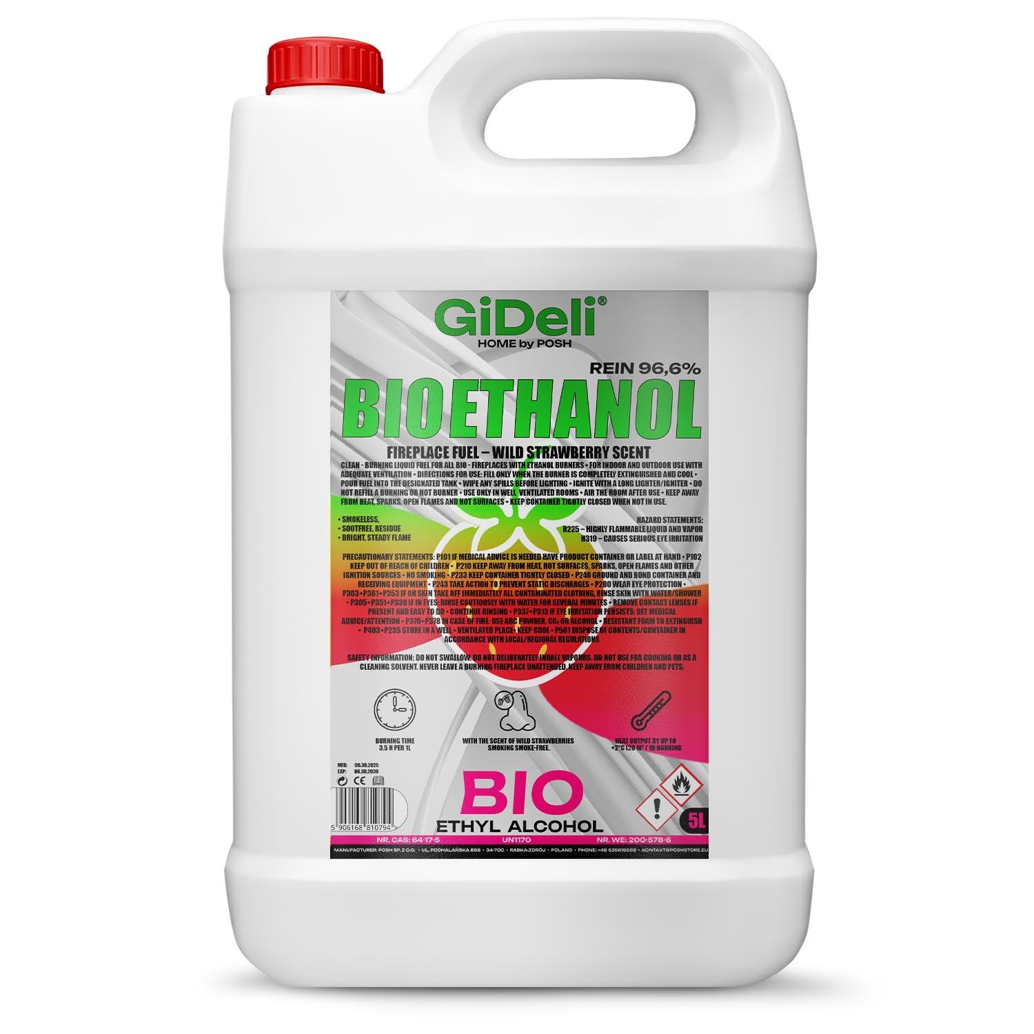 GiDeli bioethanol 5l Walderdbeerduft 96,6% Ethanol für Innen & Außenkamine