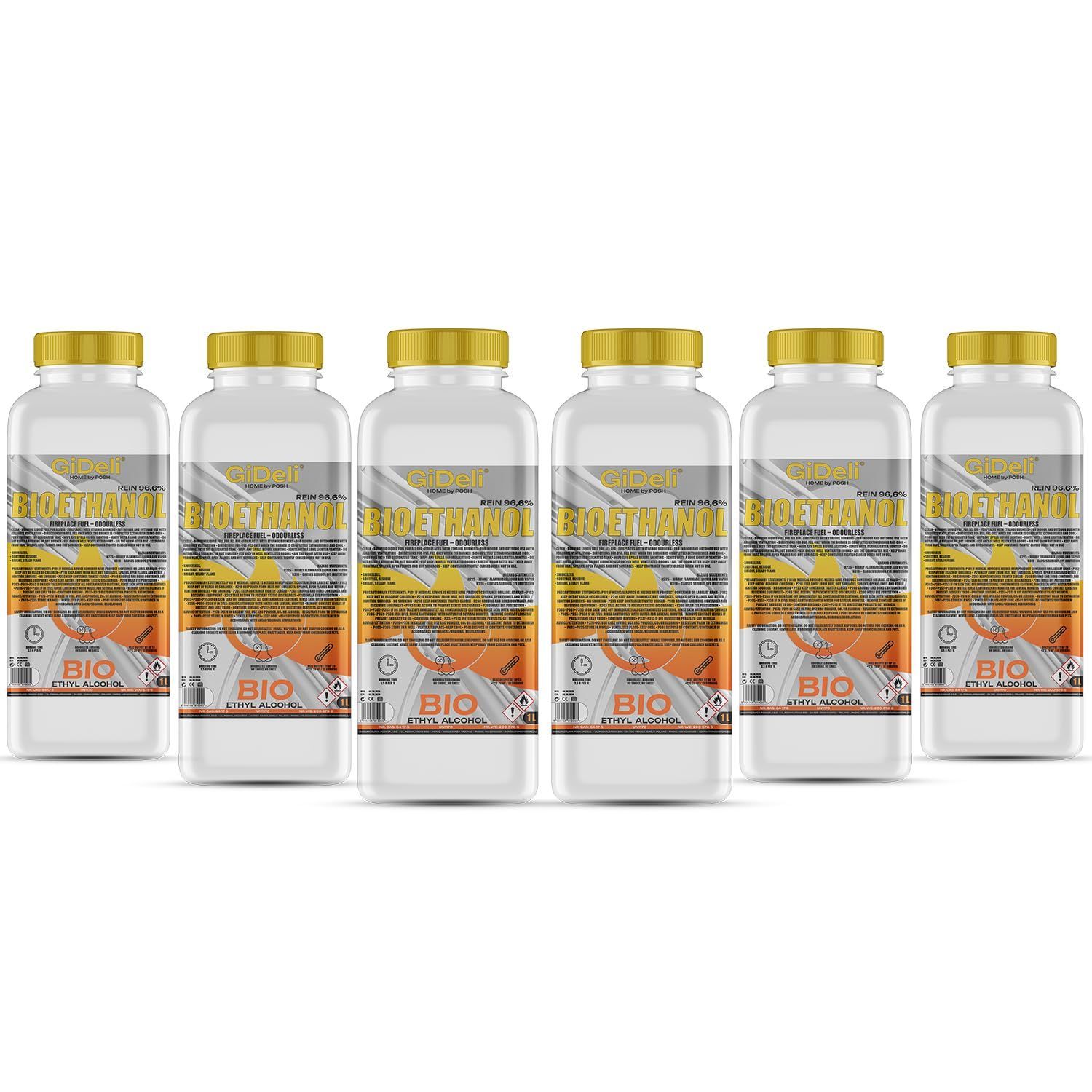 GiDeli bioethanol 6 l Ethanol 96,6% Bio Alkohol geruchlos sauber brennend