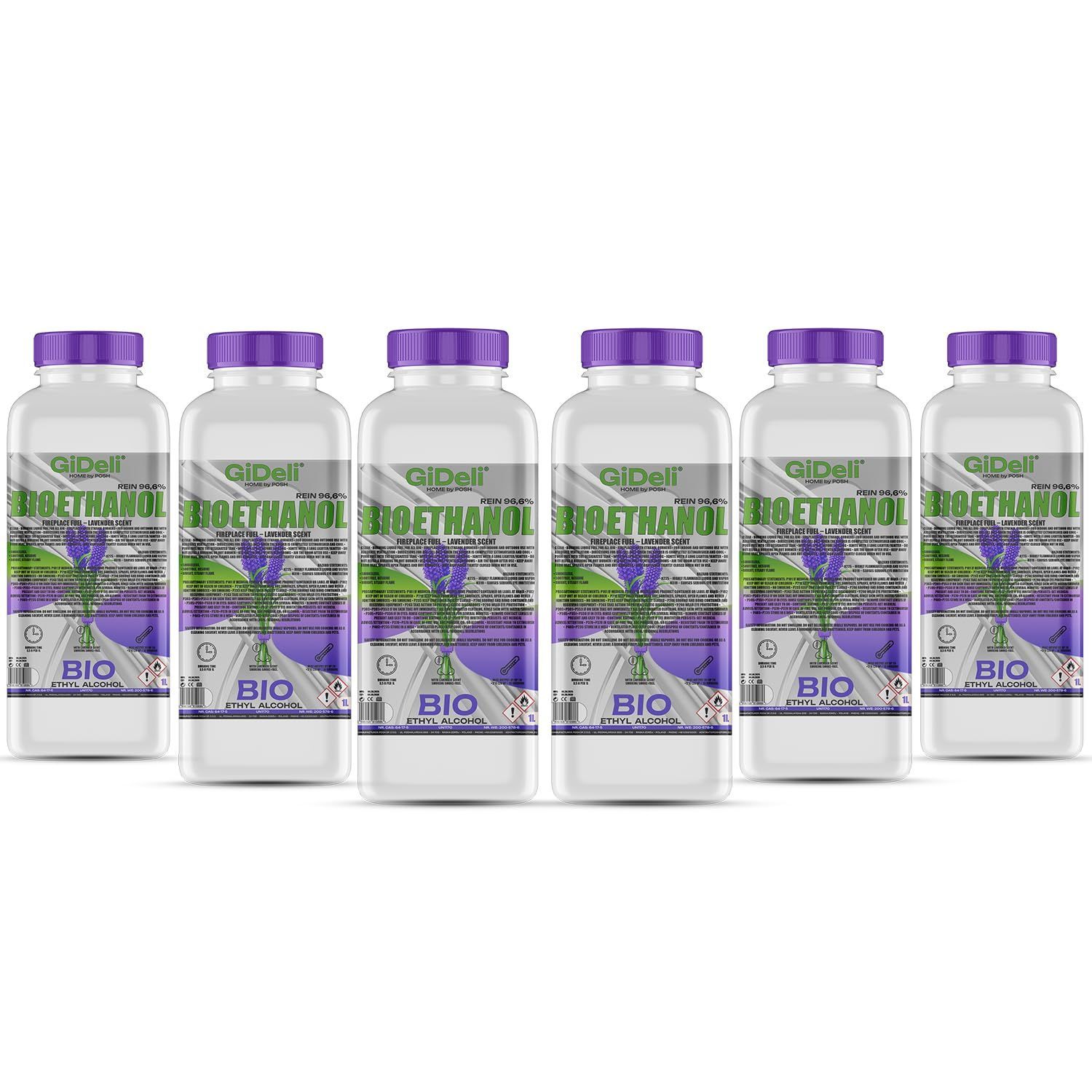 GiDeli bioethanol 6 x 1l lavendelduft 96,6% Ethanol für Innen & Außenkamine
