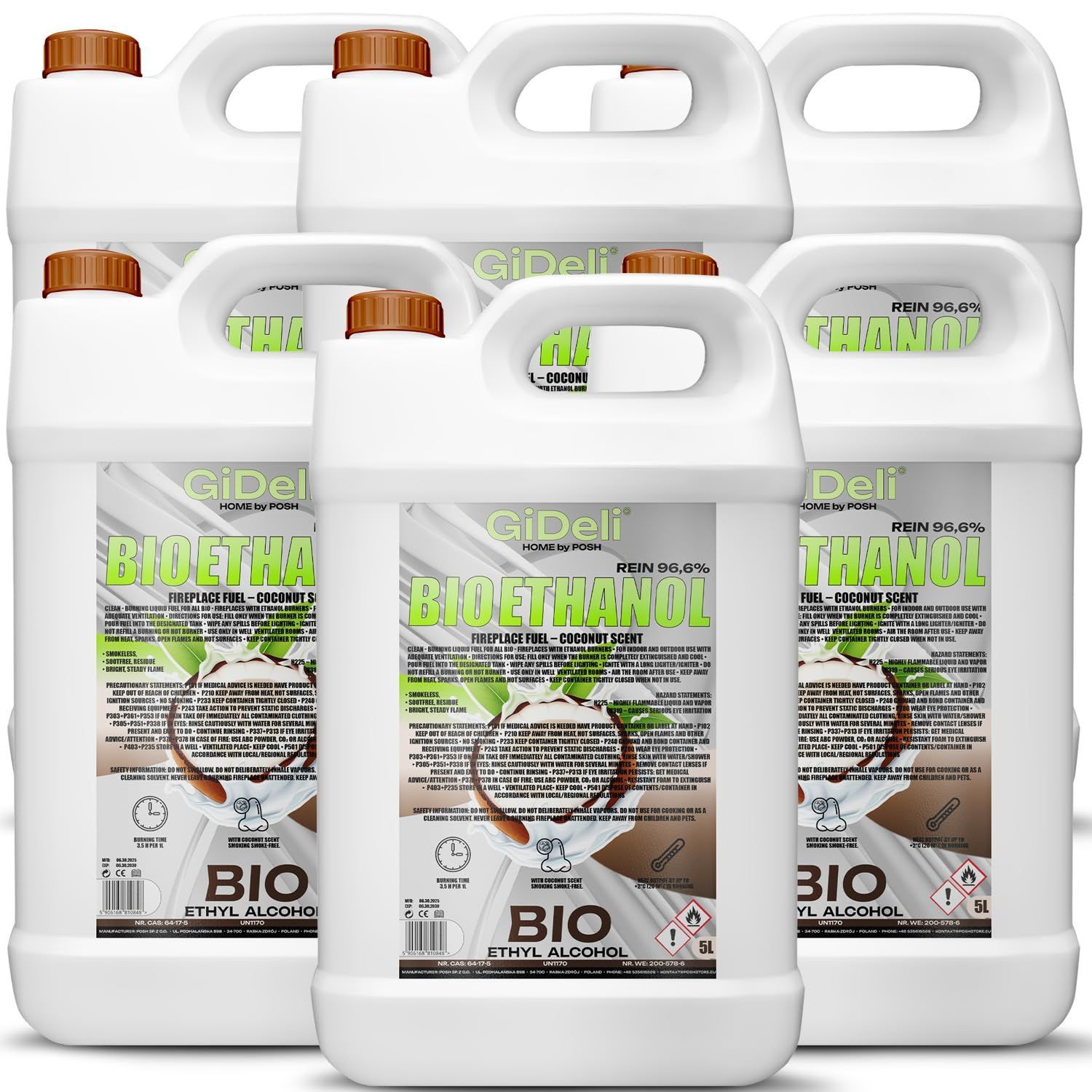 GiDeli bioethanol 6 x 5l Kokosduft 96,6% Ethanol für Innen & Außenkamine
