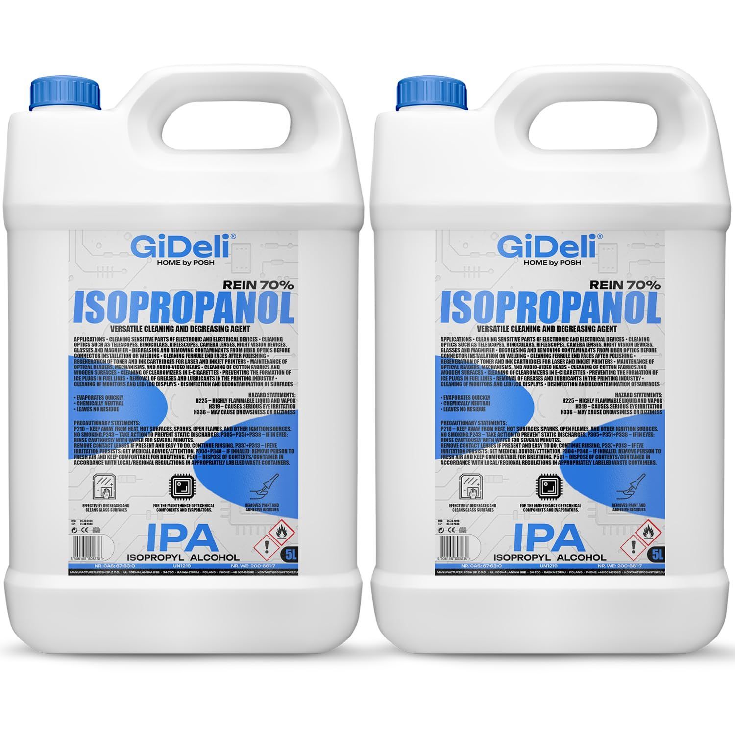 GiDeli Isopropanol 70% 2 x 5L Liter Reiniger Hochprozentiger Isopropylalkohol IPA
