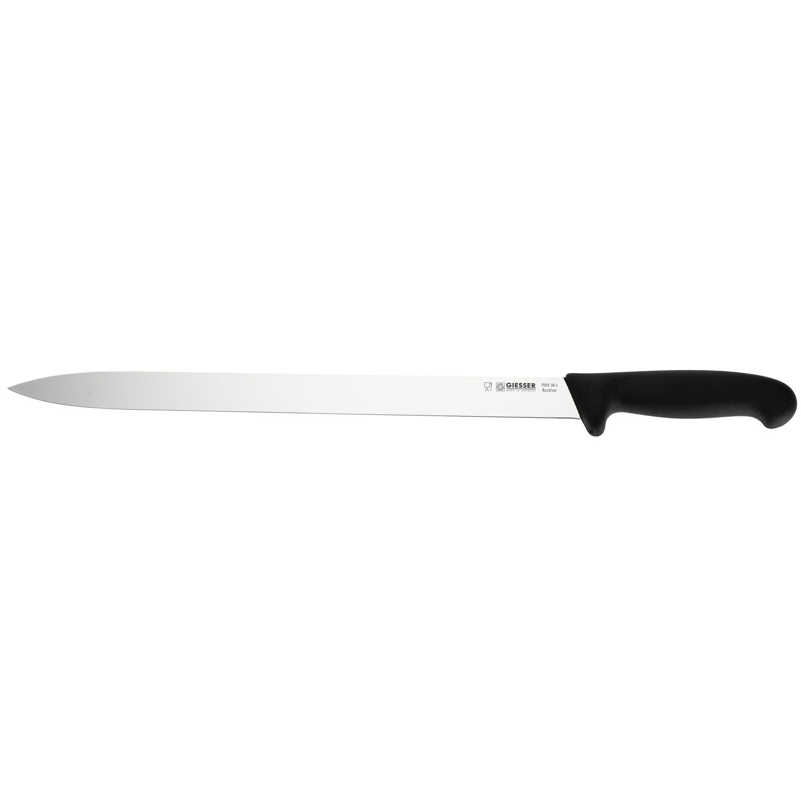 Giesser extra langes Salamimesser 36 cm mittelspitze schmale Klinge & schwarzer Griff