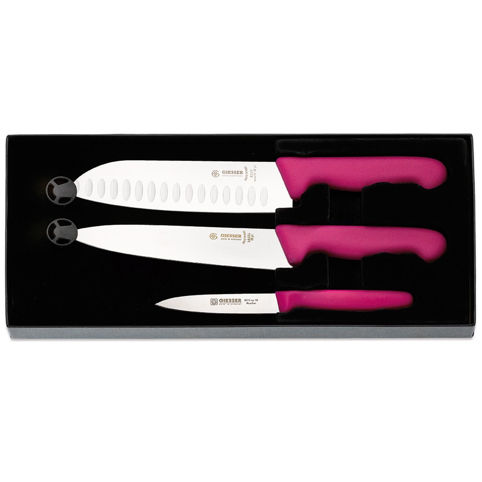 Giesser Küchenmesser-Set 3-teilig mit Santoku Kochmesser & Gemüsemesser pink