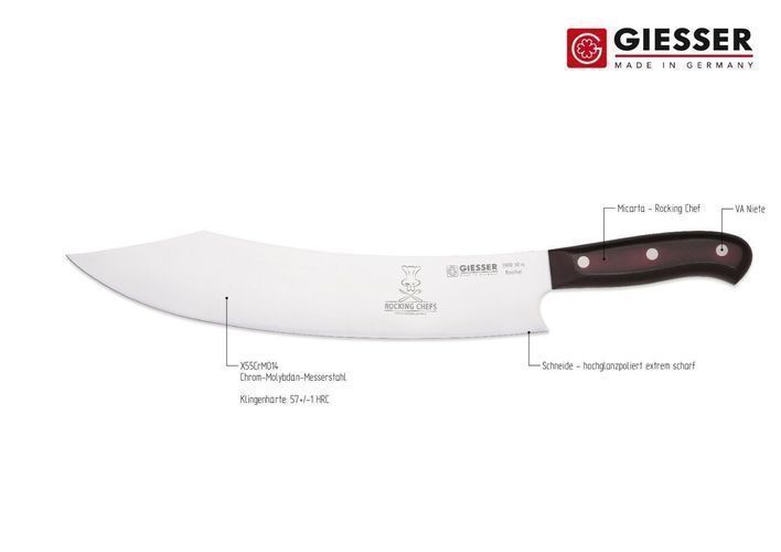 Giesser Messer 30 cm PremiumCut Micarta Chefs No 1 Rocking Chef Kochmesser BBQ