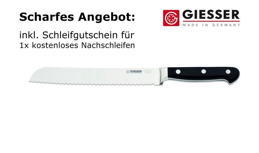 Giesser Messer Brotmesser Küchenmesser schwarz 20 cm - 6mm Welle POM geschmiedet