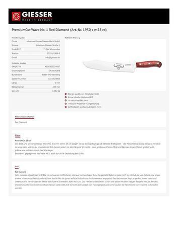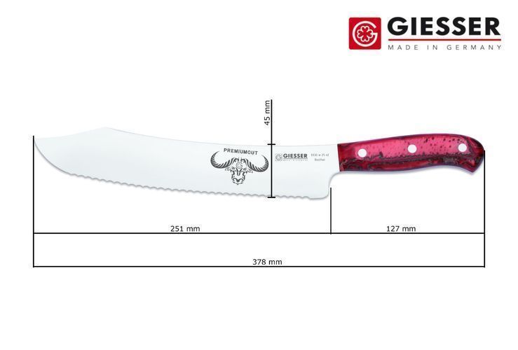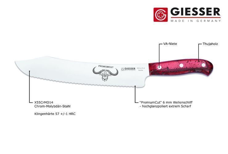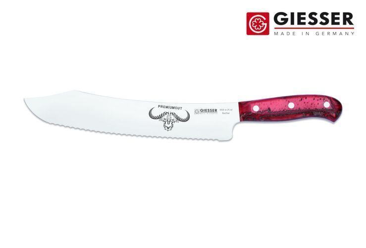Giesser Messer Brotmesser PremiumCut Wave No1 Red Diamond Acryl 25cm Welle BBQ