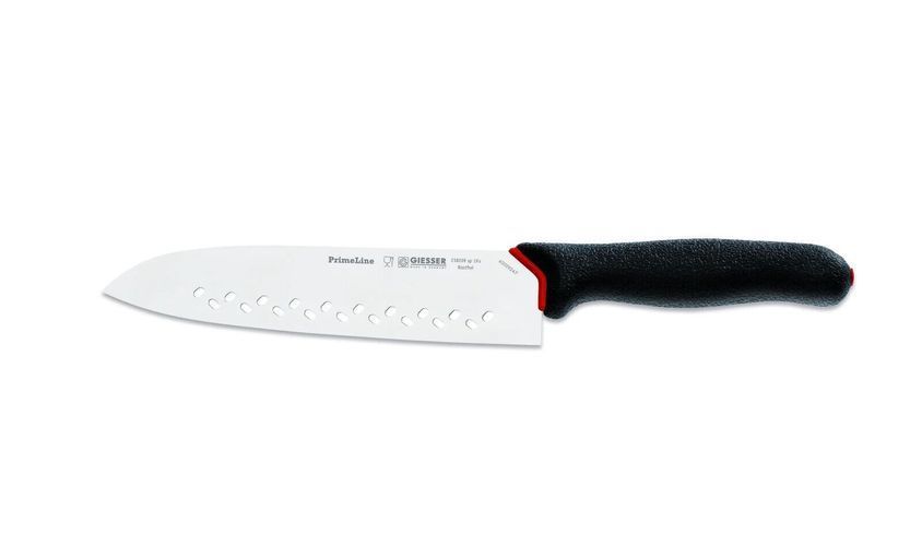 Giesser Messer Brotmesser PrimeLine Santoku Kochmesser schwarz mit Löcher 19 cm