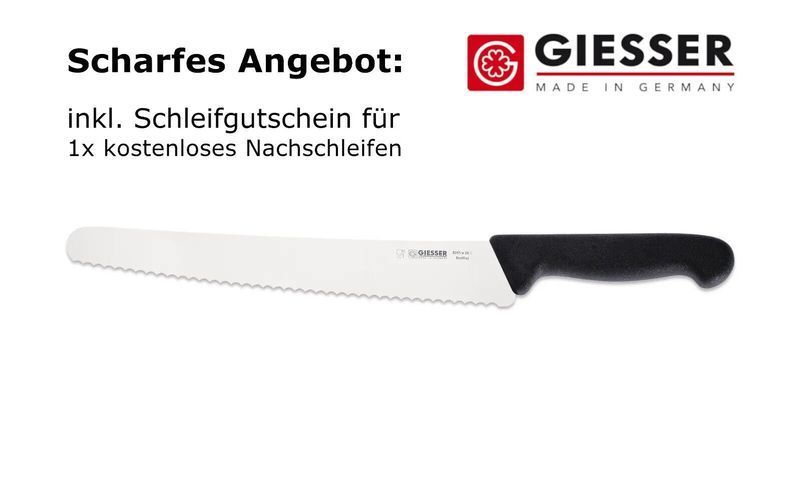 Giesser Messer Brotmesser Universalmesser für Linkshänder 25cm Welle 6mm schwarz