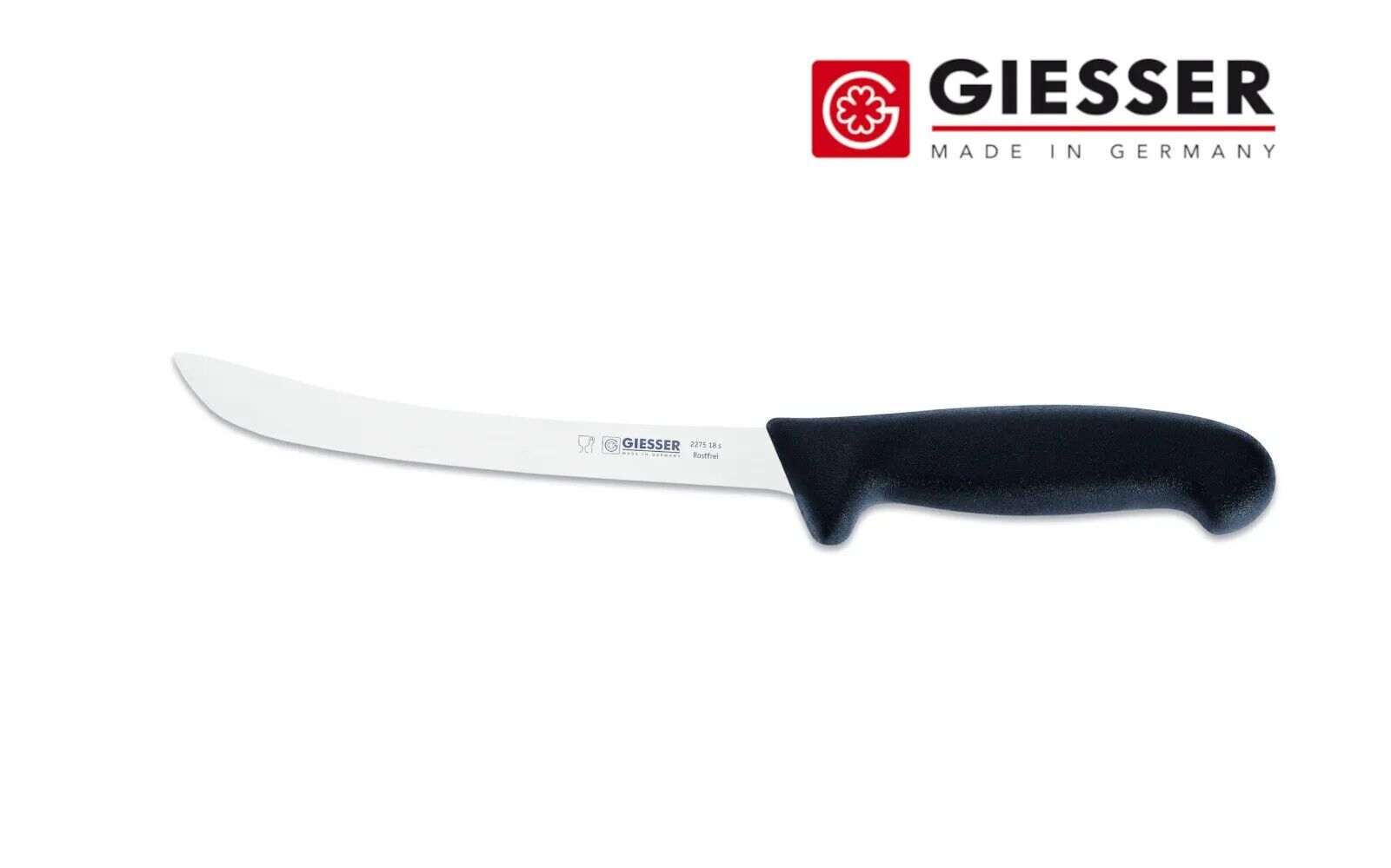 Giesser Messer Fischfiliermesser Filetiermesser fish schmal gebogen schwarz 18cm