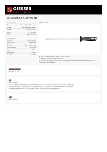 Giesser Messer Isler Messerschärfer Wetzstahl Abziehstahl Cut 25 cm schwarz rund