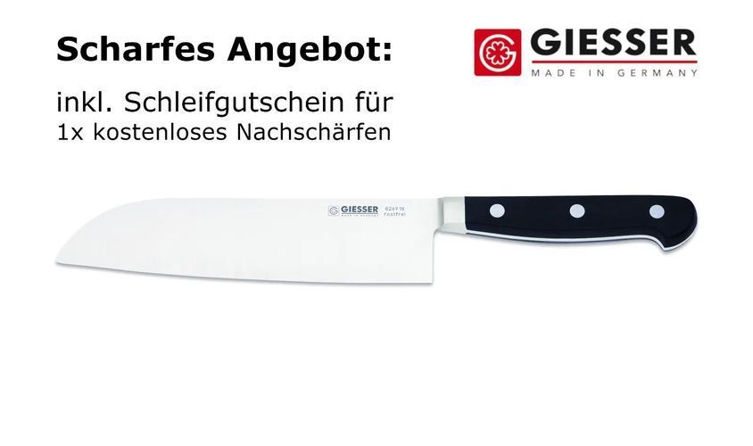 Giesser Messer Japan Santoku Kochmesser Küchenmesser geschmiedet schwarz 18 cm