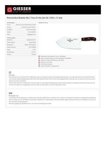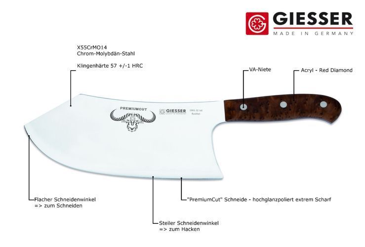 Giesser Messer PremiumCut 22 cm Thuja Butcher No. 1 Tree of Life Hackmesser BBQ