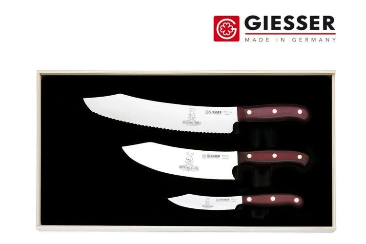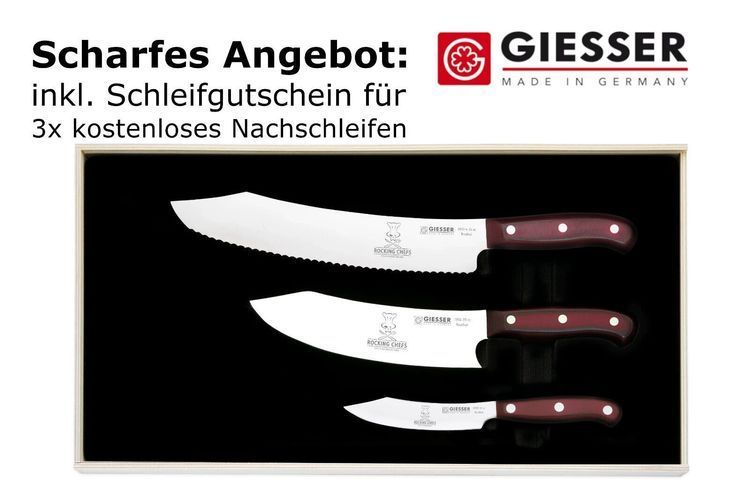Giesser Messer PremiumCut 3er Set BBQ Messer 25cm 20cm 10cm Micarta Rocking Chef
