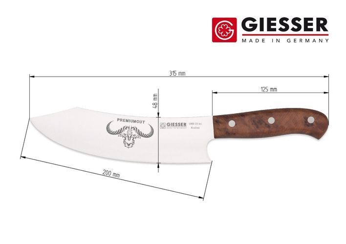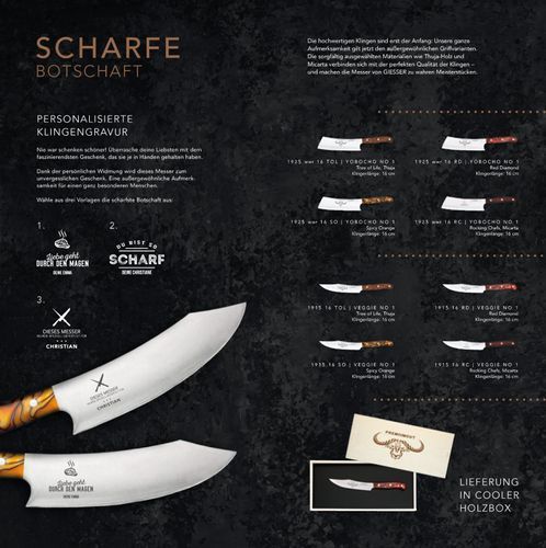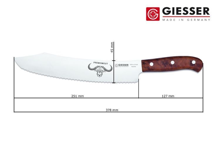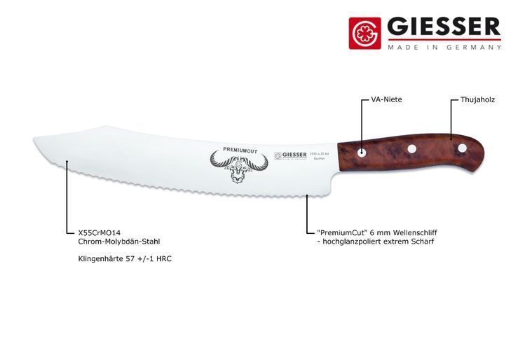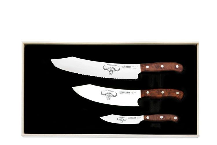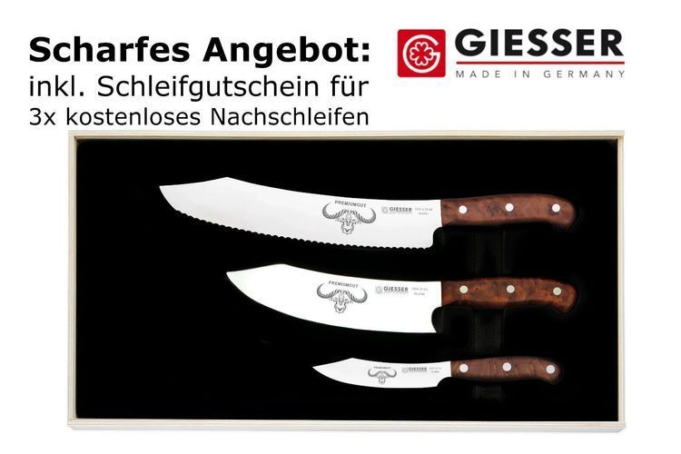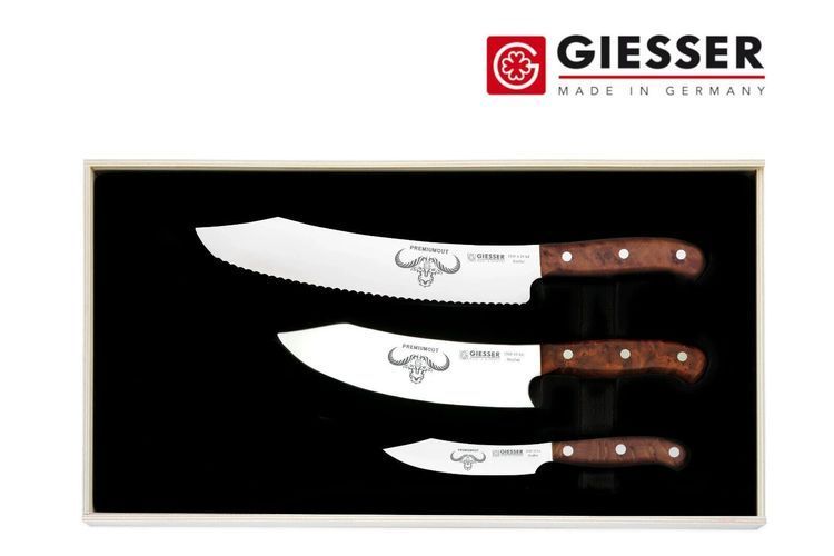 Giesser Messer PremiumCut 3er Set BBQ Messer 25cm 20cm 10cm Thujaholz Tree of