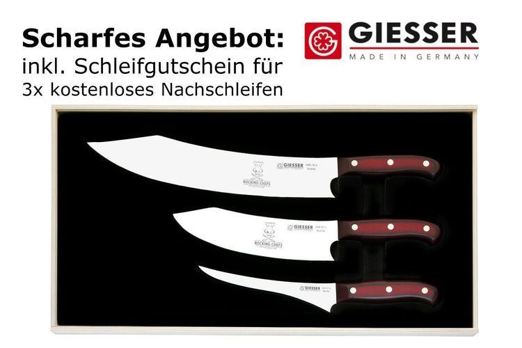 Giesser Messer PremiumCut 3er Set BBQ Messer 30cm 20cm 17cm Micarta RockingChef