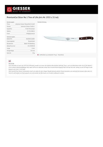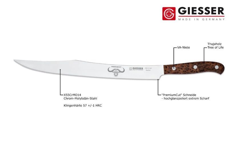 Giesser Messer Schinkenmesser PremiumCut Tree of Life Slicer No1 Thuja BBQ 31cm